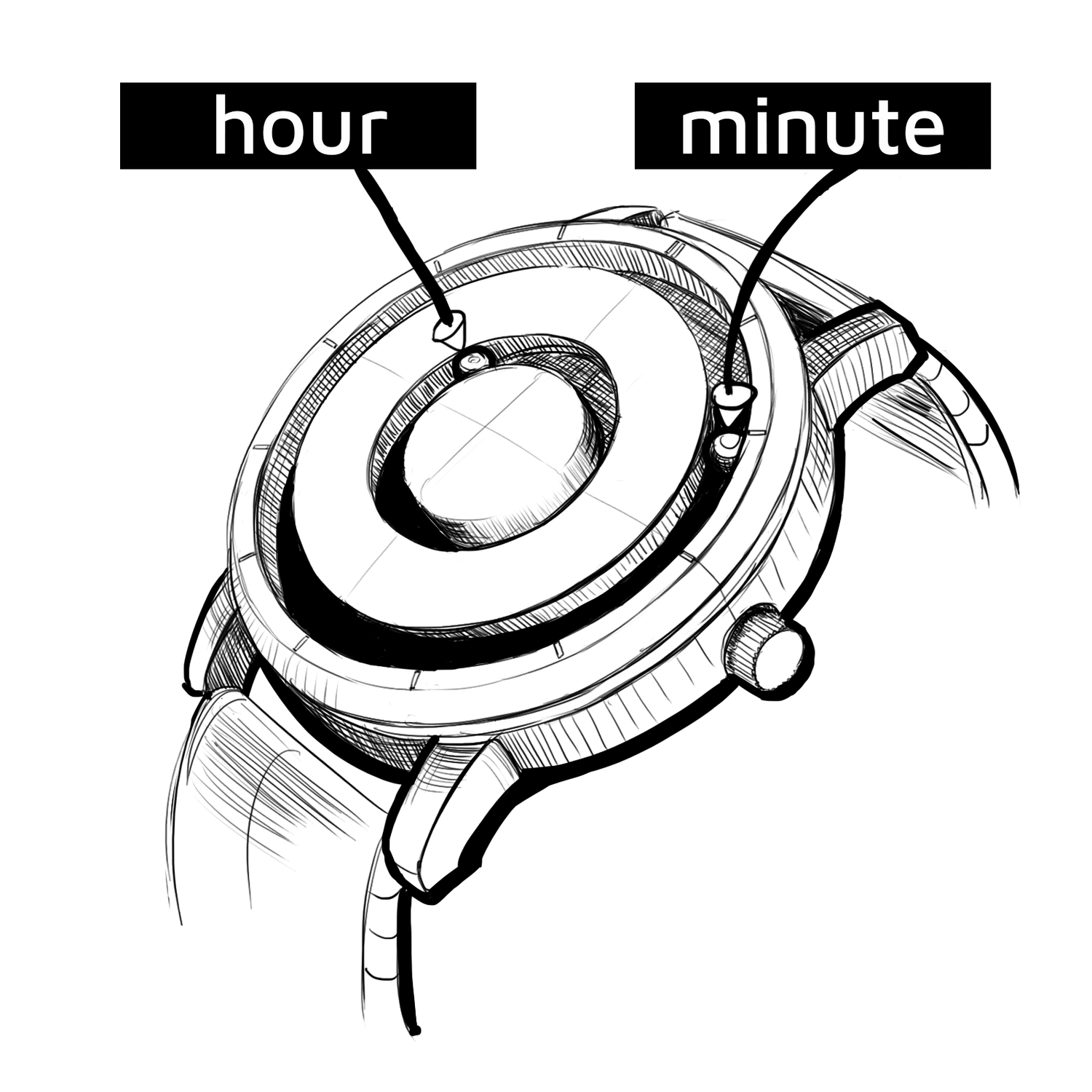 The small balls levitate magnetically above the dial to indicate the time like hands in ordinary watch dial.In this design case, the ball will slide randomly because of the watch shaking. But when the watch is not shaking, the ball will display the current time due to the magnetic force.