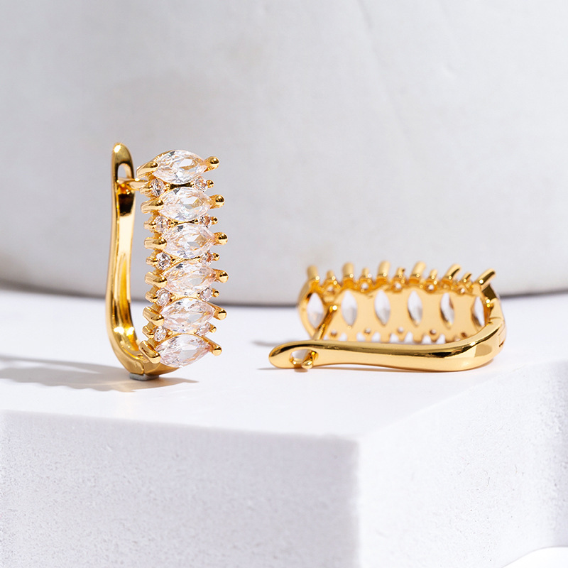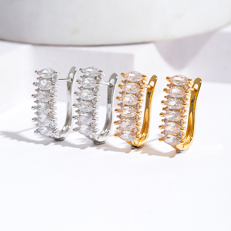 U-shaped Horse Eye Zircon Gang Drill Earrings