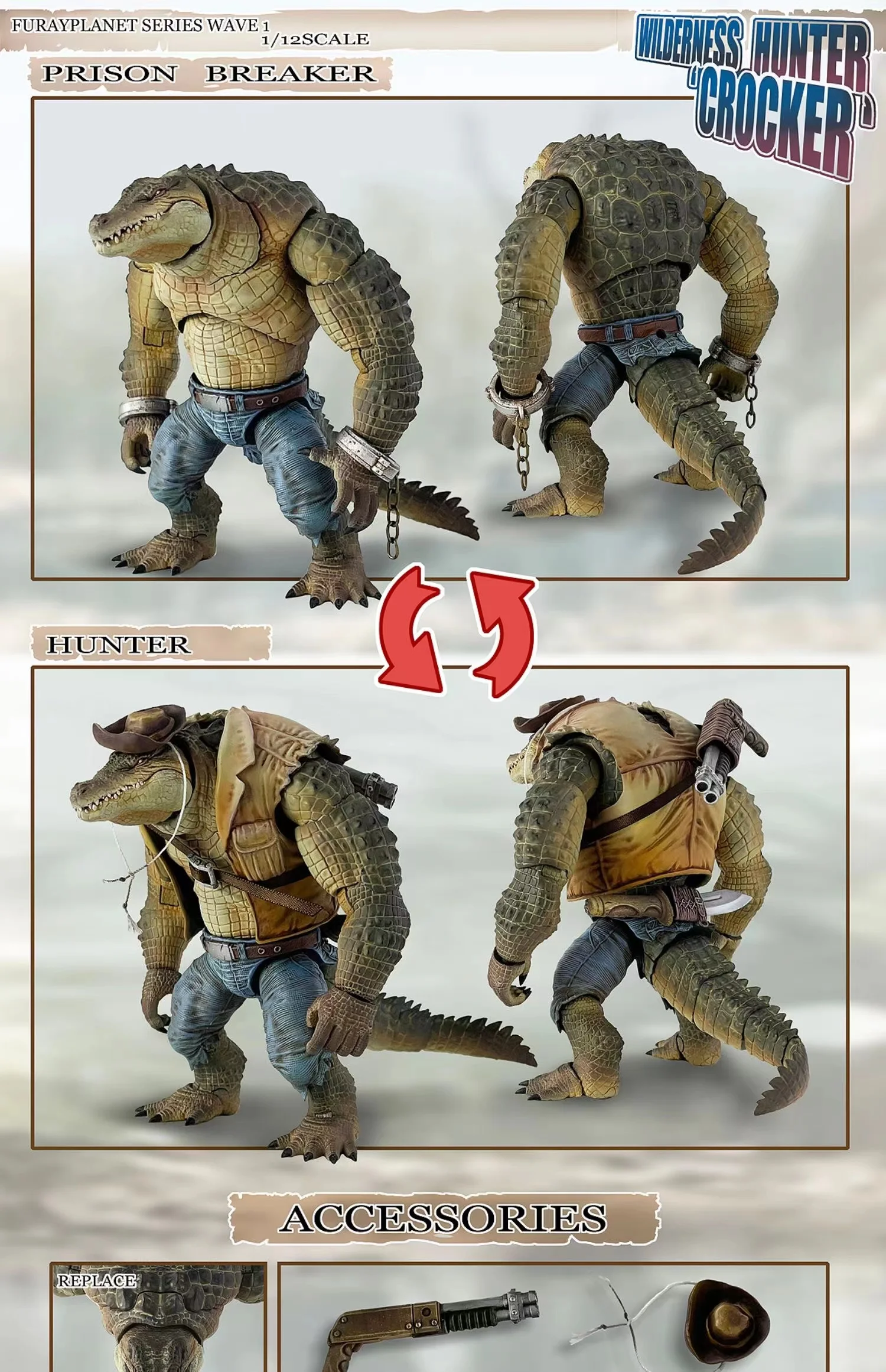 The Jiang Meng Action Figure from the Furayplanet Series Wave 1 is designed with unparalleled attention to detail. The intricate design of the Wilderness Hunter Crocker figure brings the character to life, with realistic textures, colors, and accessories.