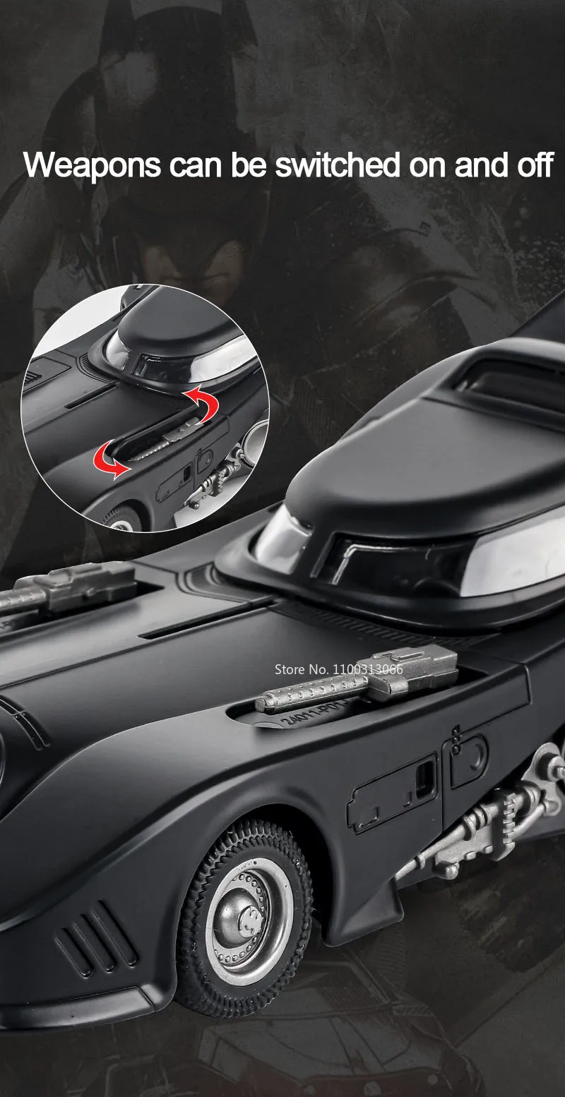 The 1/24 1989 Batmobile Alloy Car Model is the perfect gift for any Batman fan, car enthusiast, or diecast collector. Its high-quality construction, light and sound effects, and realistic design make it a standout item that is sure to delight. Whether you're looking to add to your Batman collection or provide a special gift, this model is an excellent choice.