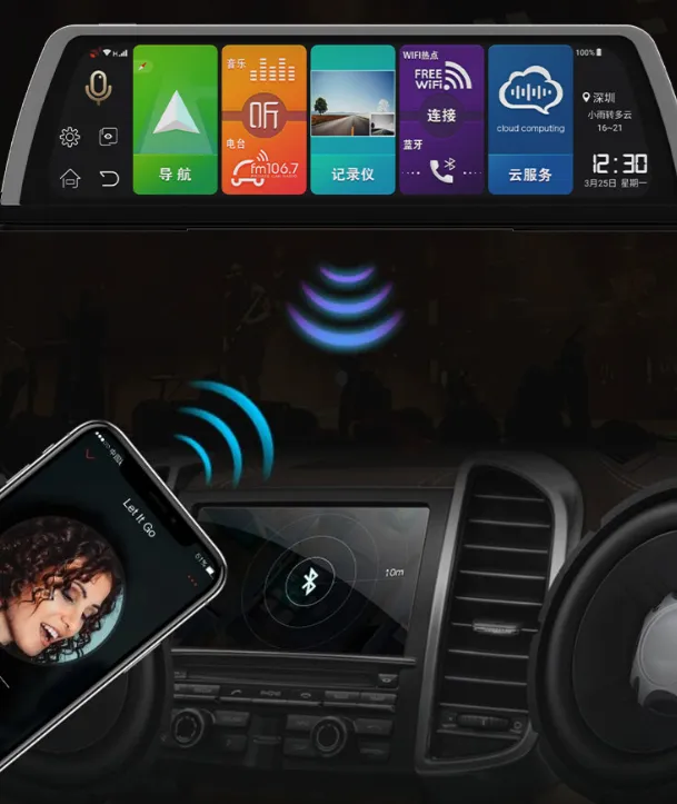 Functions: Bluetooth, GPS navigation, positioning, reversing image, loop video, constant speed measurement, parking surveillance, collision