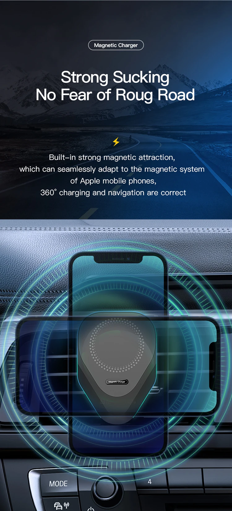 - Secure Hold: Strong magnets keep your phone securely in place, even on rough roads.