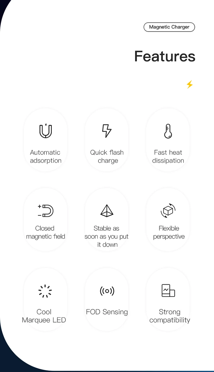 - Foreign Object Detection: Automatically stops charging if a foreign object is detected between the phone and charger.