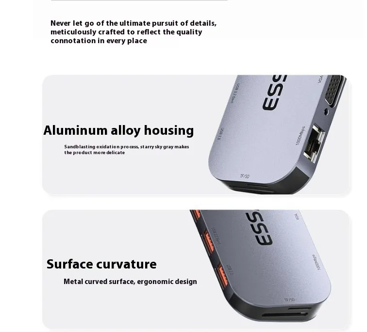 The 11-in-1 Expansion Dock Type-C HUB Multi-function Gigabit Network Port Cable Separator is an all-in-one solution that allows you to unlock the full potential of your device. Offering a comprehensive array of ports including USB, HDMI, Gigabit Ethernet, and more, this expansion dock is perfect for both work and entertainment. Its compact and portable design ensures that you can stay connected and productive wherever you go.