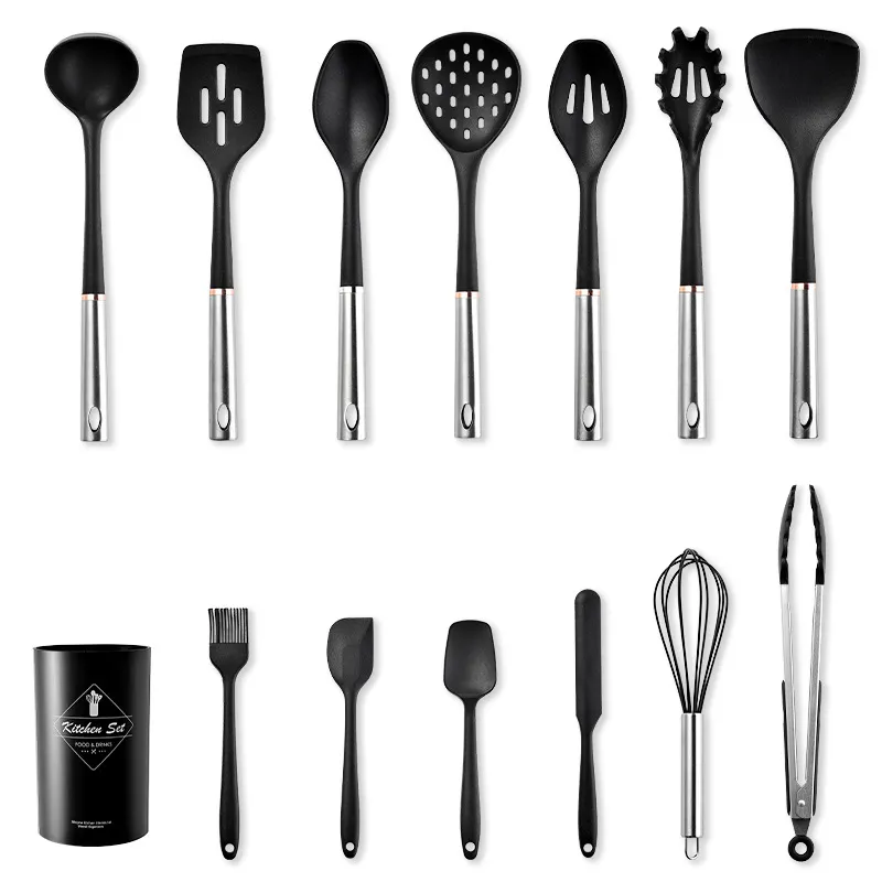 14-Piece Silicone Kitchenware With Stainless Steel Handle