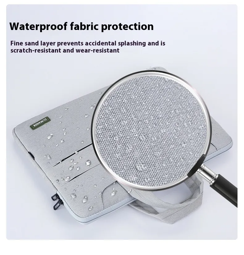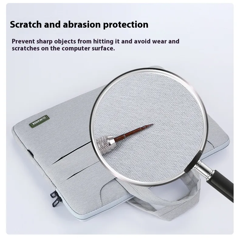 tear. The material is water-resistant, ensuring your laptop and accessories stay safe even in light rain.