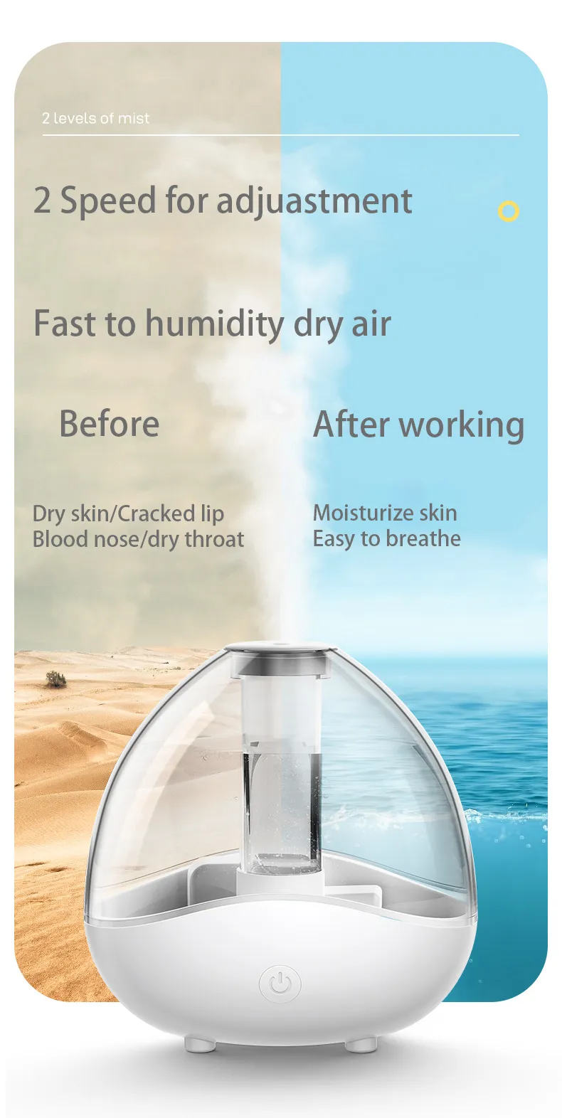 Enhanced Sleep Quality: The ultrasonic humidifier operates quietly, making it an ideal companion for your bedroom to