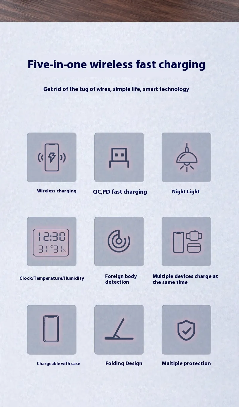 1. Multi-Device Wireless Charging: Simultaneously support fast charging of multiple devices, including phones, watches, and headphones,