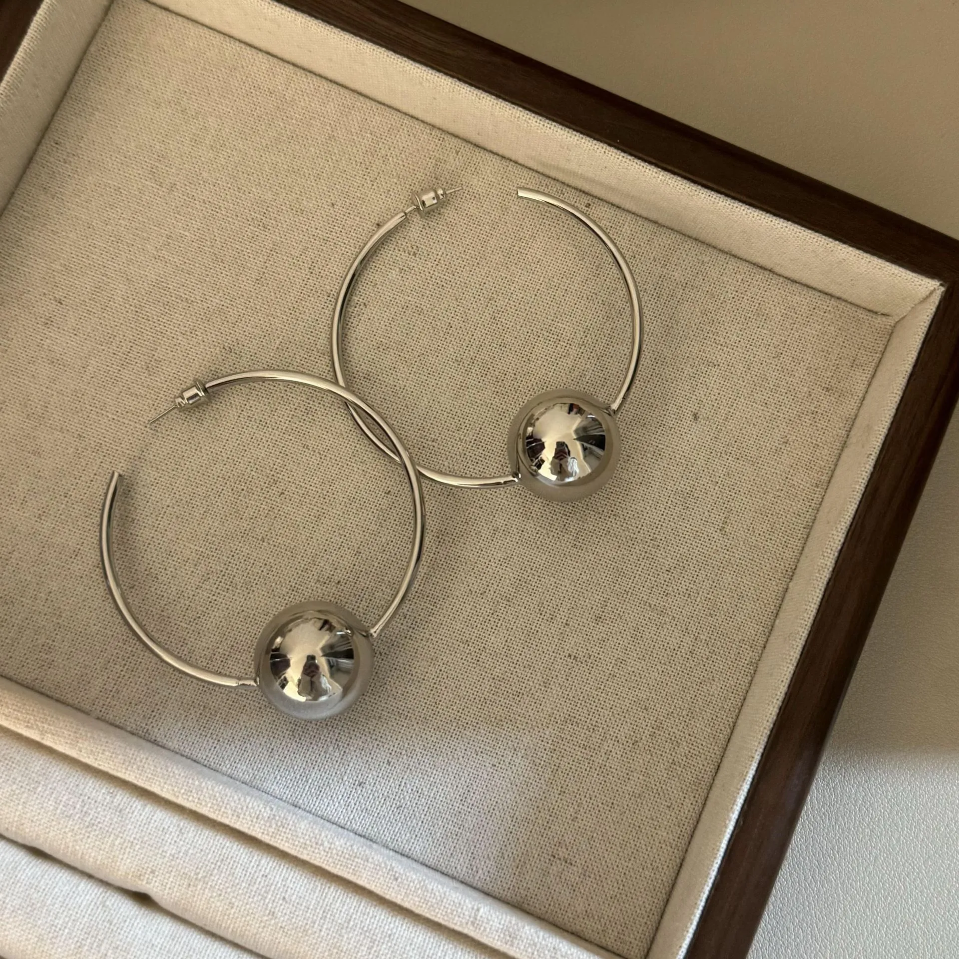 The striking design of these earrings makes them an attention-grabber wherever you go. The large circle combined with the smooth ball design creates a chic, modern look that will elevate your outfit instantly. Whether you're attending a wedding, enjoying a night out, or simply adding an elegant touch to your daily ensemble, these earrings make a statement.
