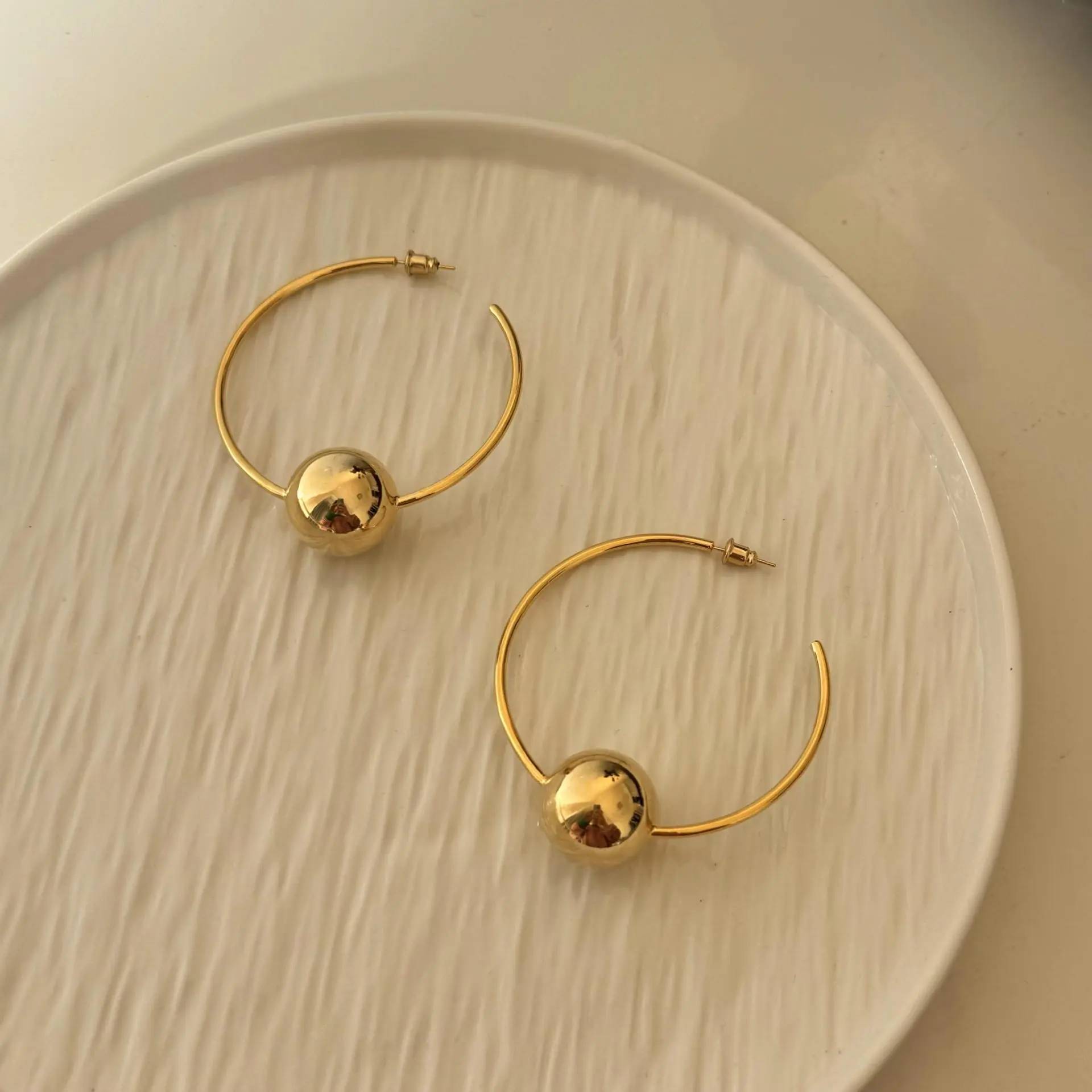 H1: 18K Brass Gold Plated Big Circle Ball Earrings – Bold, Elegant, and Timeless