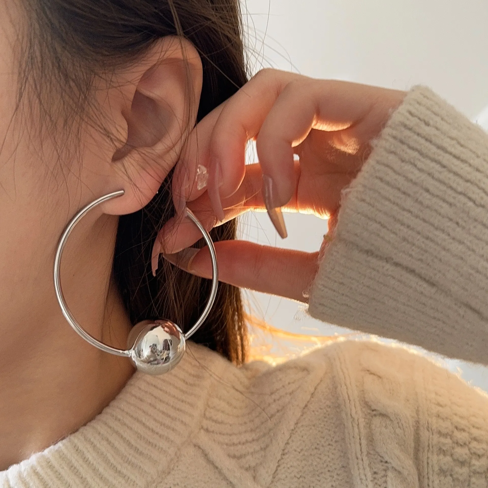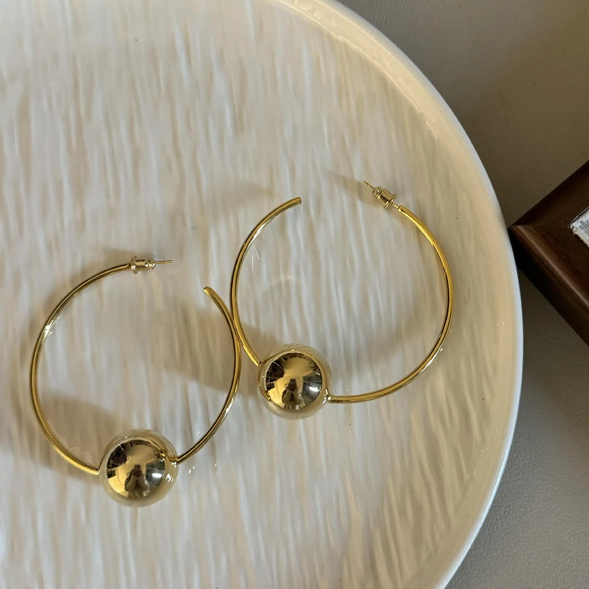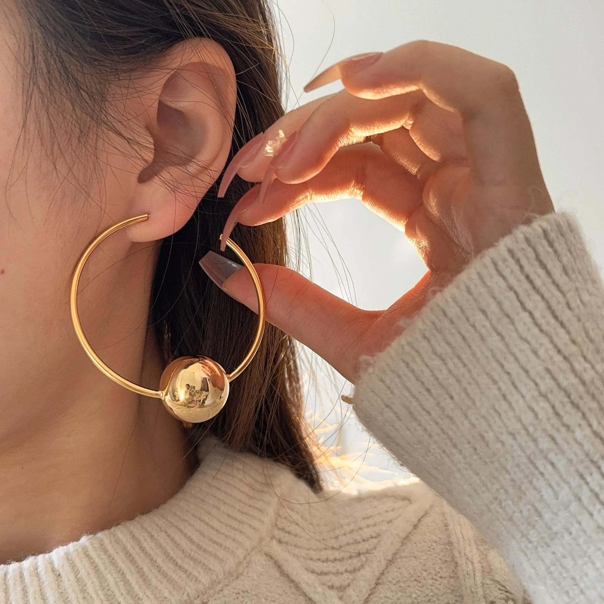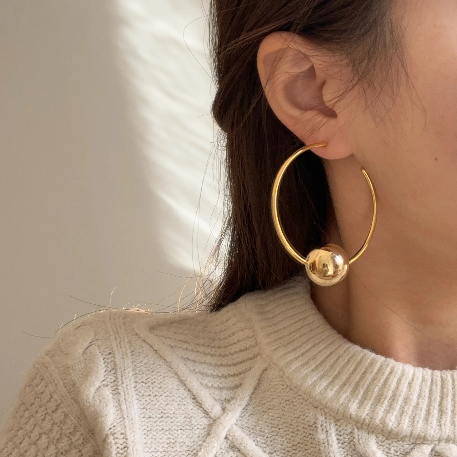 The striking design of these earrings makes them an attention-grabber wherever you go. The large circle combined with the smooth ball design creates a chic, modern look that will elevate your outfit instantly. Whether you're attending a wedding, enjoying a night out, or simply adding an elegant touch to your daily ensemble, these earrings make a statement.