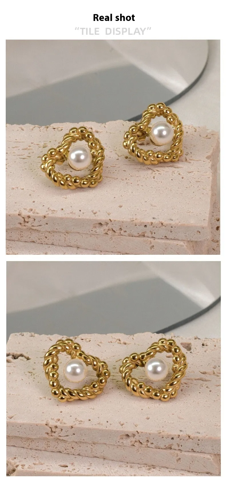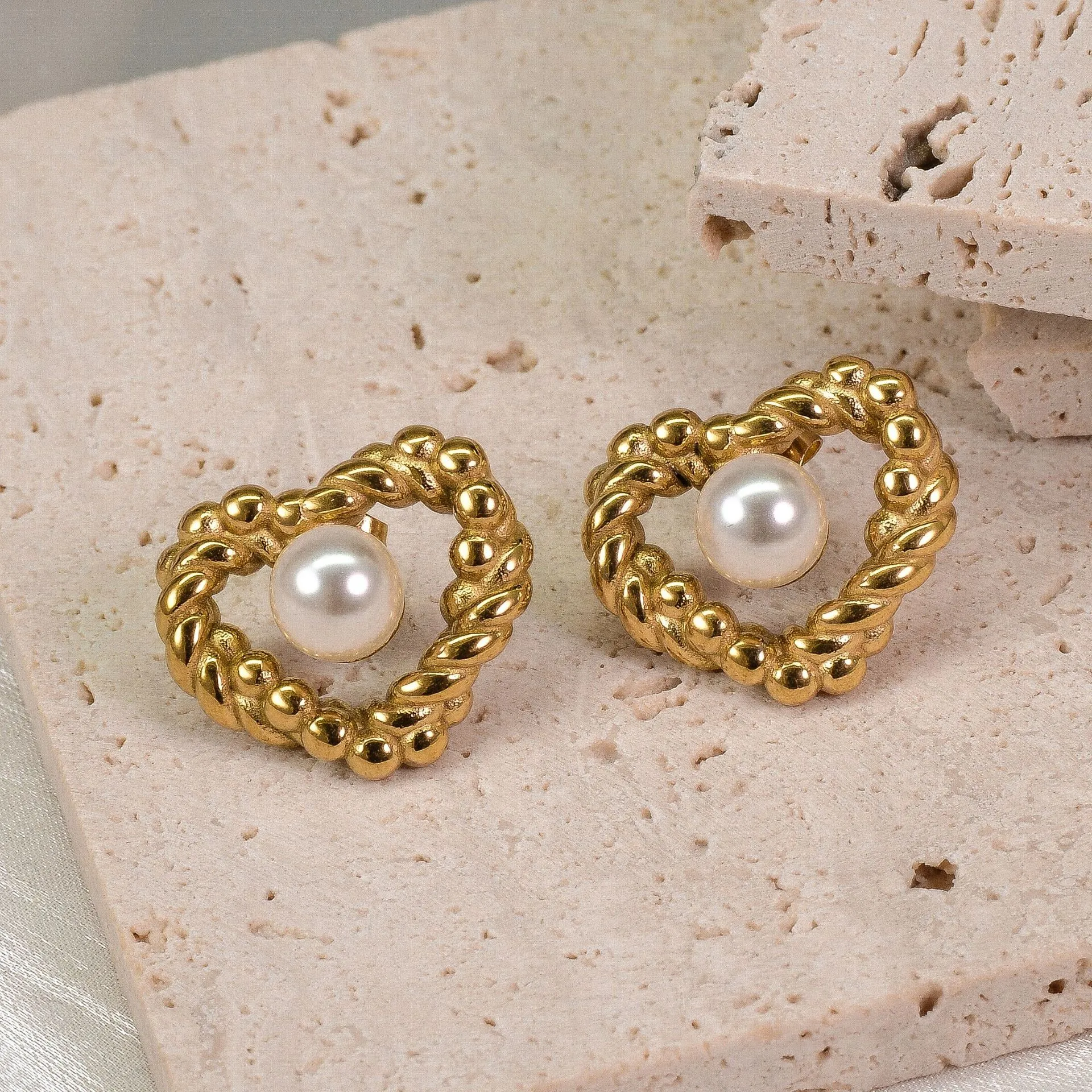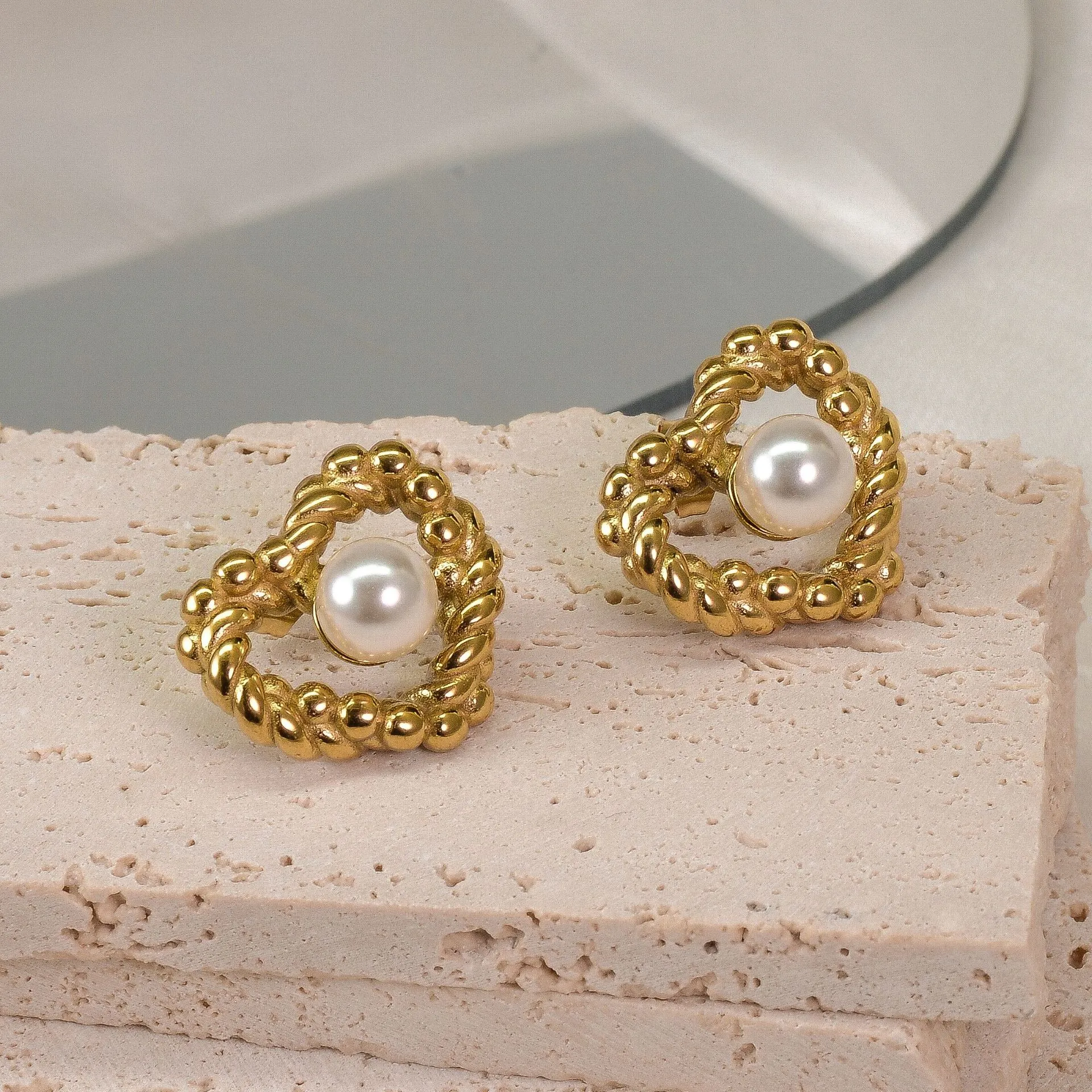18K Fashion Retro Twist Pearl Heart-shaped Ear Studs