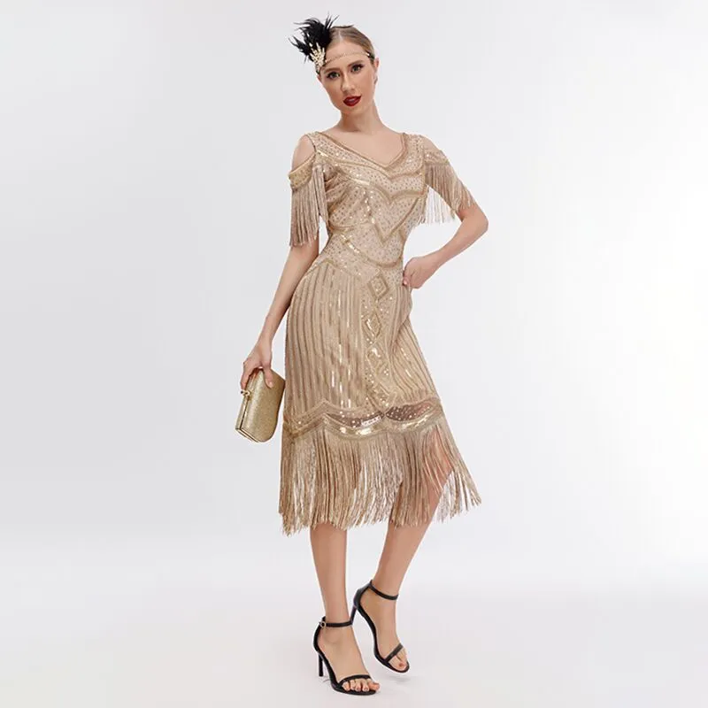 Tunic-style dresses, characterized by their loose, flowing shape, were also popular in the 1920s. These dresses often featured a drop waistline and were embellished with embroidery or beaded patterns. The relaxed silhouette allowed for maximum comfort while still maintaining an air of sophistication, making it an excellent choice for evening wear.