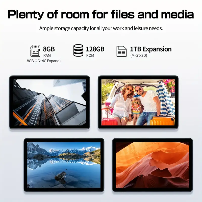 With 128GB ROM and expandable storage, the PRITOM Tab 12 offers ample space for apps, documents, photos, and videos. You can store all your important files, media, and games without worrying about running out of space. Plus, the expandable storage gives you the flexibility to increase your storage capacity further, making it perfect for users who need more space for larger files or apps.