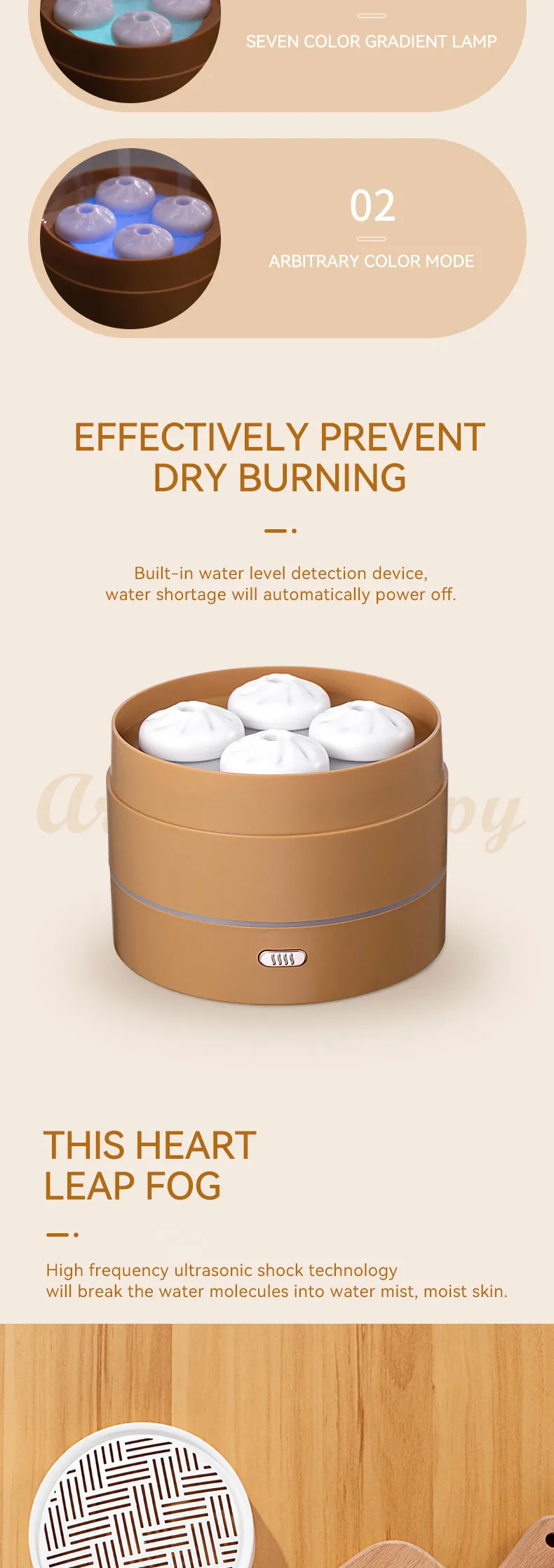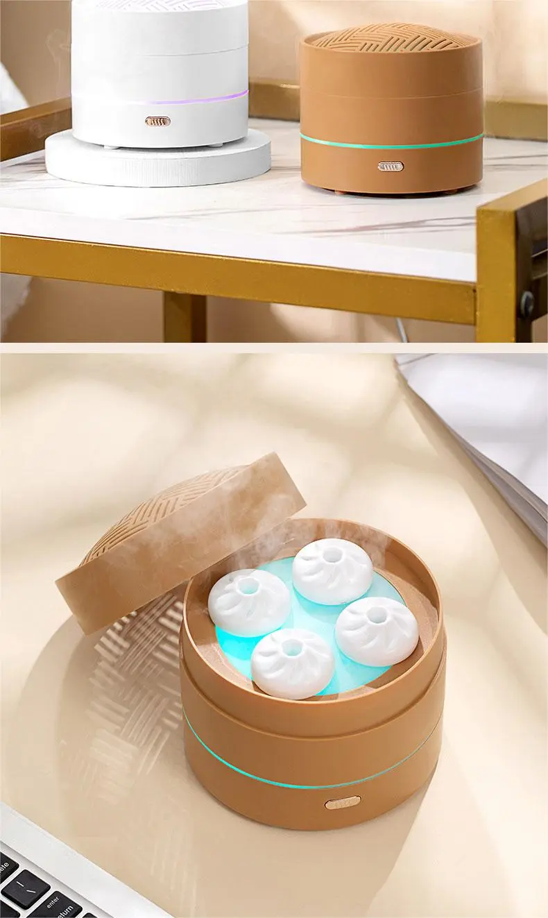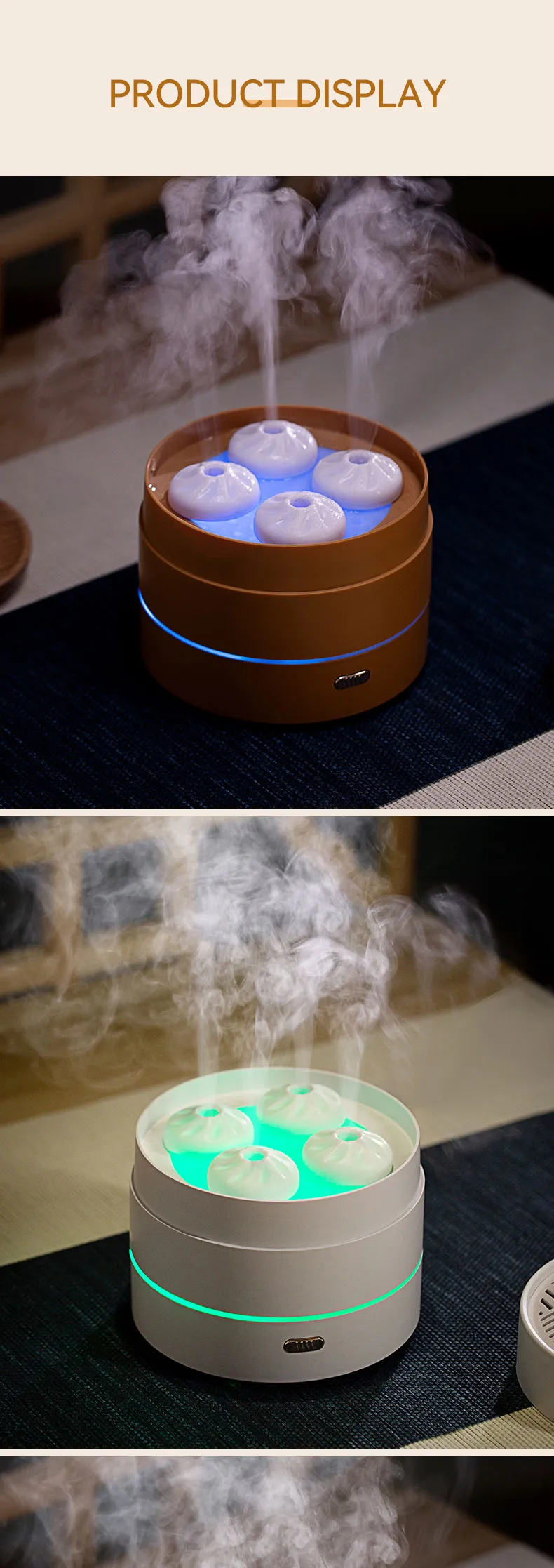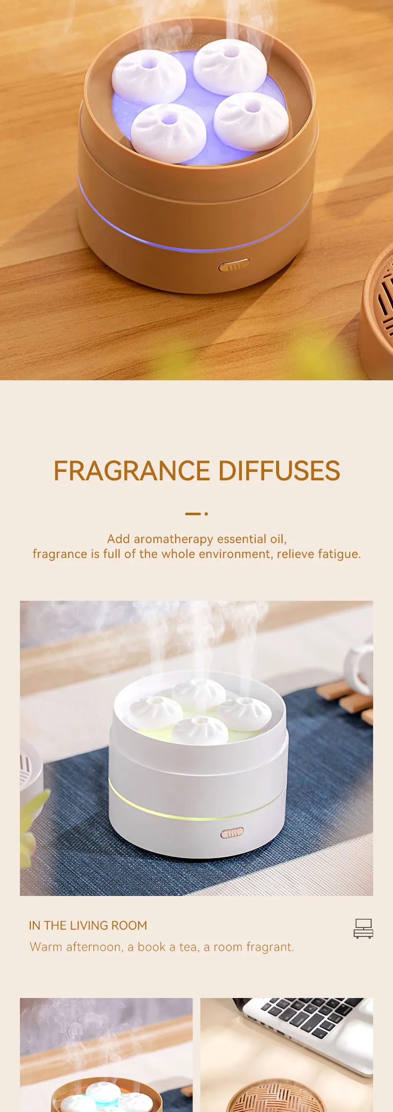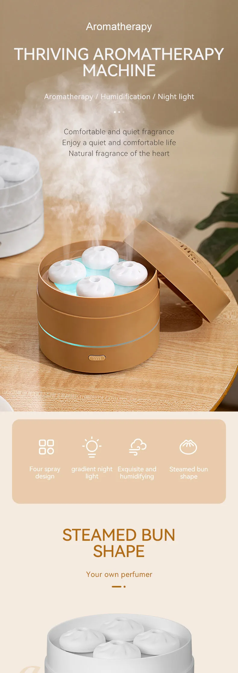 1pc Unique Four Spray Design Steaming Bun Aroma Diffuser 200ml USB Ultrasonic Air Humidifier LED Night Light Essential Oil Diffuser Aromatherapy Diffuser For Home Office
