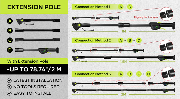 pole, allowing you to extend it to 4.6~9 feet for pruning tall branches, Bed backs/borders and generally hard-to-reach areas, and with the