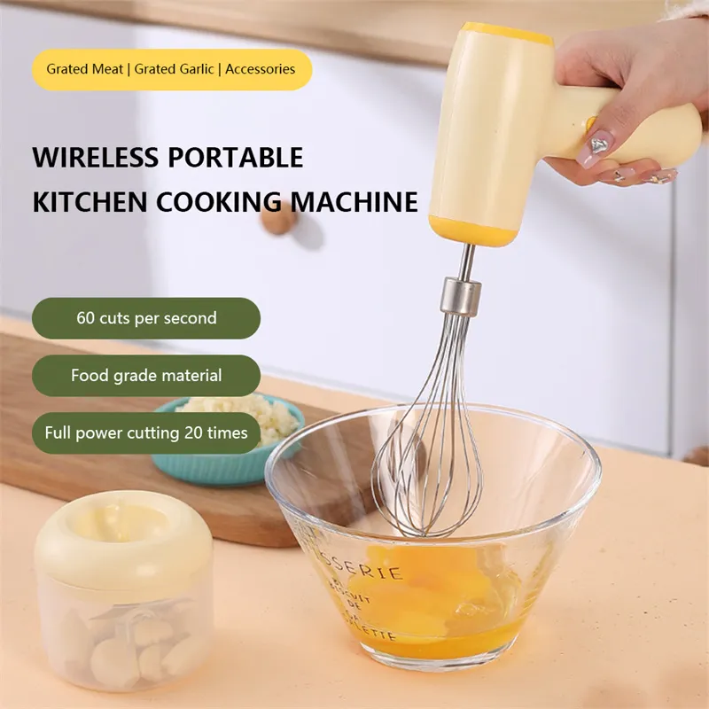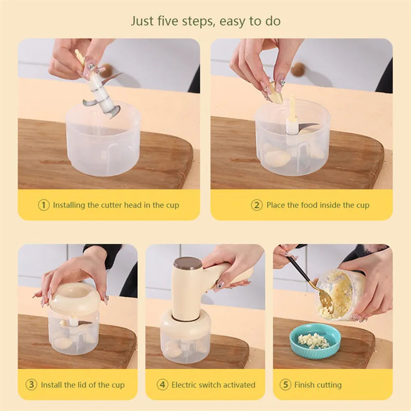 2 In 1 Electric Garlic Chopper USB Rechargeable Vegetable Chili Meat Ginger Masher Handheld Multipurpose Kitchen Gadgets