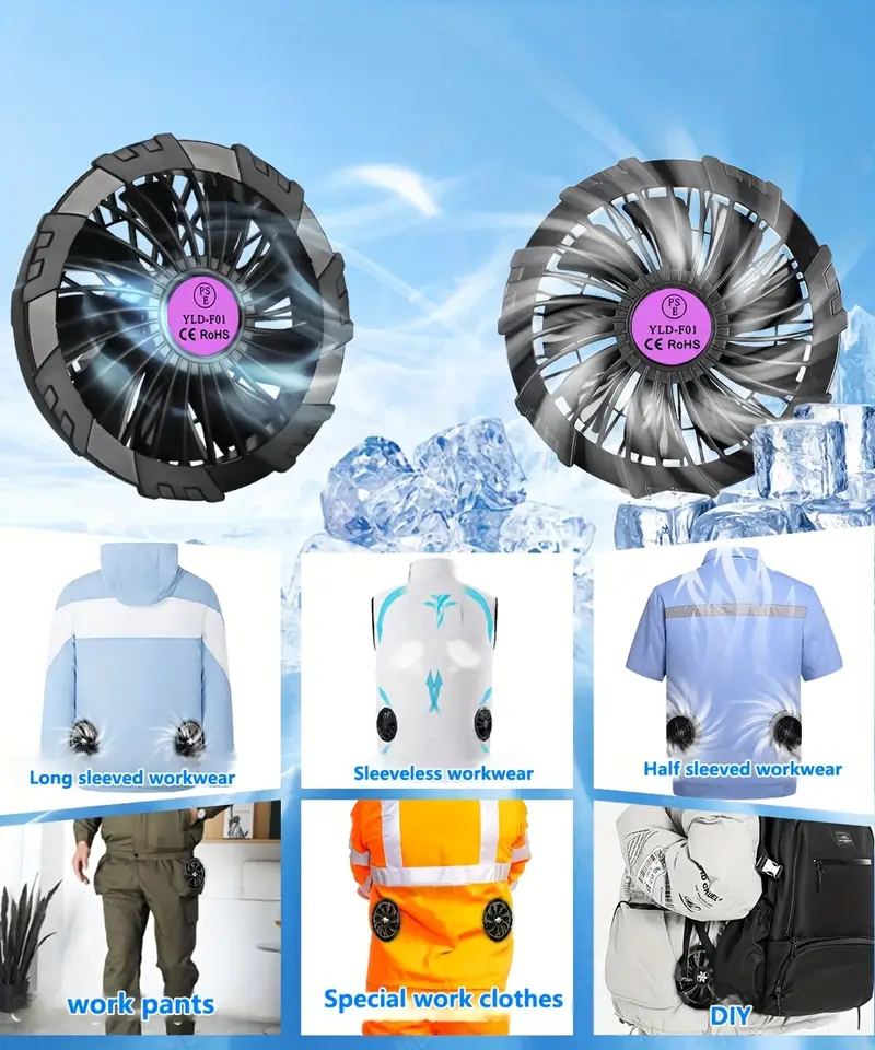 Ultra High Rotation Fan / Powerful Blower: The latest air conditioning work clothes fan in the summer is equipped with 9 blades that utilize aerodynamics, reducing the resistance of wind by 35%, and the wind is centered to create a powerful breeze. In addition, it uses a new Japanese plushless motor with excellent torque characteristics, high output, and a maximum speed of 7,500 rpm. The moment you turn it on, you will experience an amazing super strong air flowFour level wind speed regulation, paired with a 21V-20000mAh dedicated battery. Long press the power button on the battery to turn it on, and short press the power button to For Switch between four levels of wind speed freelySimple and sophisticated design and shock resistant durability: Made of high temperature and impact resistant ABS resin, this product is sturdy and resistant to breakage, and has excellent durability. The cooling fan also features a wire cord release design to eliminate cable contact failure, secure the power plug firmly and provide more stable power supply to the fanGreat for a variety of occasions such as architecture, civil engineering, factory work, fiLower Legg, forestry work, farms, outdoor work, transportation, Conflictehouse work, mountain climbing, walking, golf, touring, camping, and more'%3E%3Crect x='0' y='0' width='852' height='1024' fill='%23a1b4bf'/%3E%3Cg transform='scale(4.00) translate(0.5 0.5)'%3E%3Cg transform='translate(43.91 76.96) rotate(174.05) scale(40.04 44.46)'%3E%3Cellipse fill='%230c060c' fill-opacity='0.50' cx='0' cy='0' rx='1' ry='1'/%3E%3C/g%3E%3Cg transform='translate(196.11 225.90) rotate(47.54) scale(21.80 28.59)'%3E%3Cellipse fill='%23000000' fill-opacity='0.50' cx='0' cy='0' rx='1' ry='1'/%3E%3C/g%3E%3Cellipse fill='%23ffffff' fill-opacity='0.50' cx='58' cy='158' rx='212' ry='38'/%3E%3Cellipse fill='%23584e55' fill-opacity='0.50' cx='166' cy='77' rx='42' ry='42'/%3E%3Cg transform='translate(108 218) rotate(-1) scale(41 47)'%3E%3Crect fill='%23ff9d00' fill-opacity='0.50' x='-0.5' y='-0.5' width='1' height='1'/%3E%3C/g%3E%3Cg transform='translate(148.91 0.00) rotate(268.01) scale(41.40 176.18)'%3E%3Cellipse fill='%236bd1ff' fill-opacity='0.50' cx='0' cy='0' rx='1' ry='1'/%3E%3C/g%3E%3Cg transform='translate(37 225) rotate(1) scale(23 59)'%3E%3Crect fill='%23292710' fill-opacity='0.50' x='-0.5' y='-0.5' width='1' height='1'/%3E%3C/g%3E%3Cg transform='translate(95.45 115.61) rotate(281.79) scale(90.90 22.56)'%3E%3Cellipse fill='%23d8f7ff' fill-opacity='0.50' cx='0' cy='0' rx='1' ry='1'/%3E%3C/g%3E%3Crect fill='%23faffff' fill-opacity='0.50' x='125' y='117' width='28' height='135'/%3E%3Cpolygon fill='%23000000' fill-opacity='0.50' points='2,271 11,217 -6,223'/%3E%3C/g%3E%3C/g%3E%3C/svg%3E)