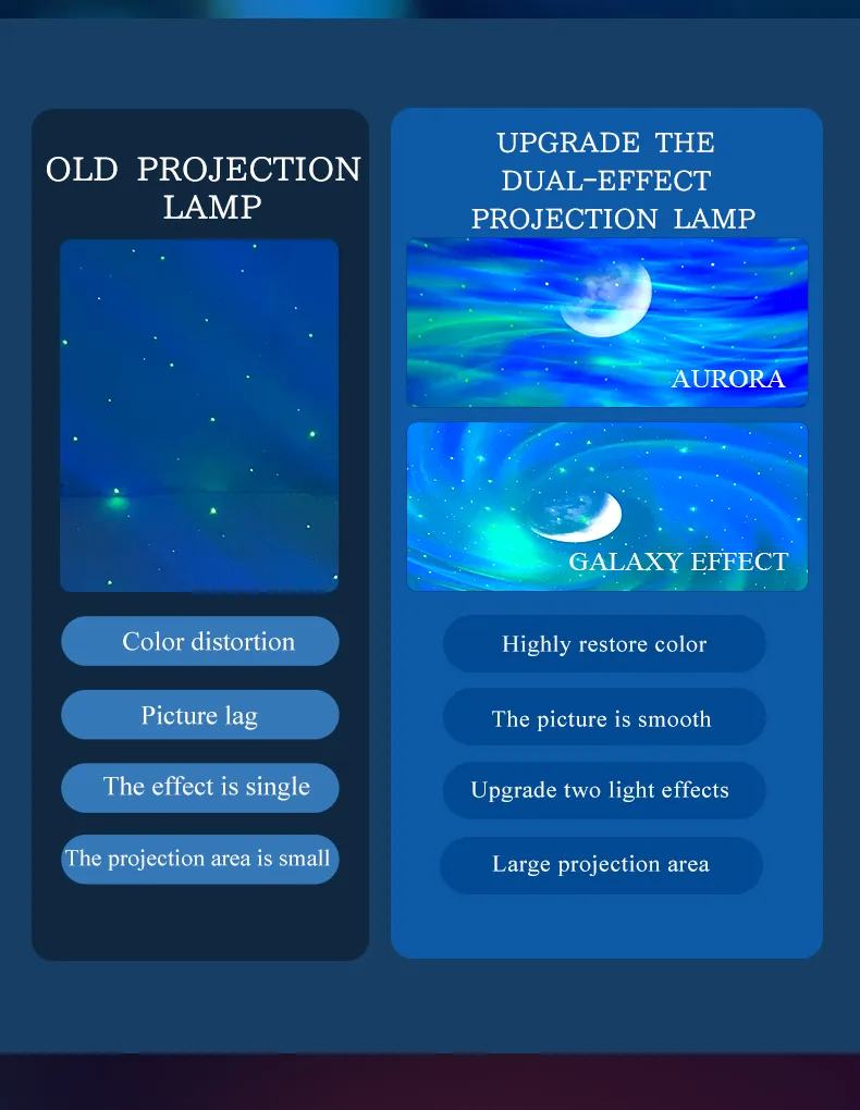 2023 New Double Effect Northern Lights Projector Lamp Milky Way Atmosphere Lamp Starry Sky Lamp White Noise Projector Lamp With Rometes