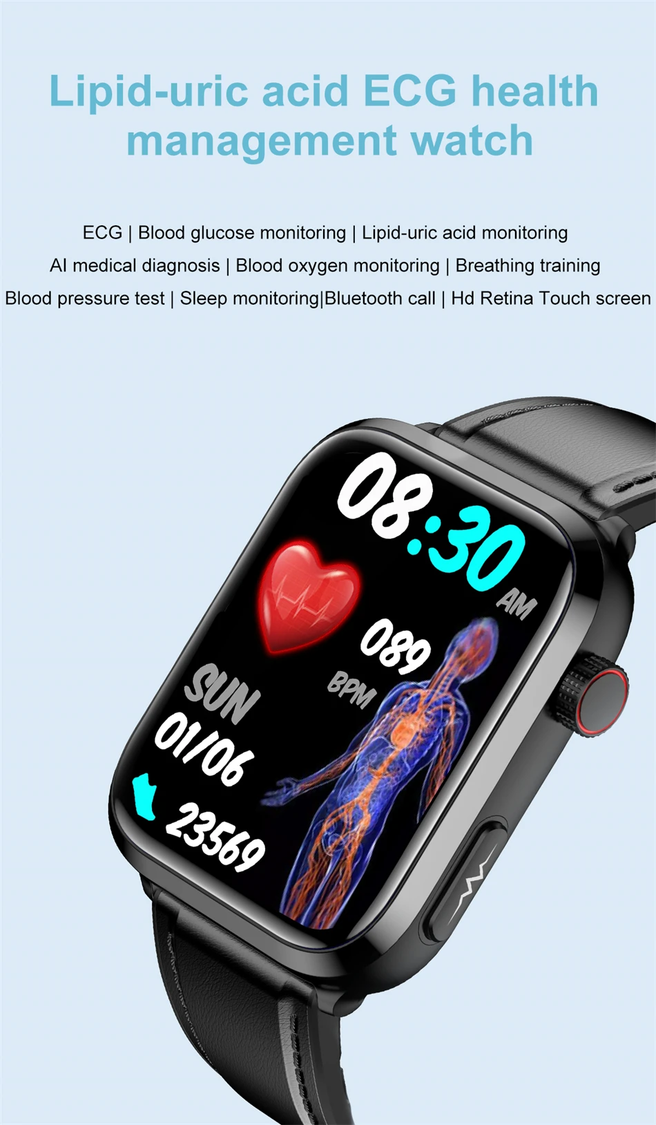 2024 AI Medical Diagnosis Smart Watch Blood Lipids, Uric Acid, Blood Glucose Monitoring with ECG+PPG, Bluetooth Calls, and Health Tracking