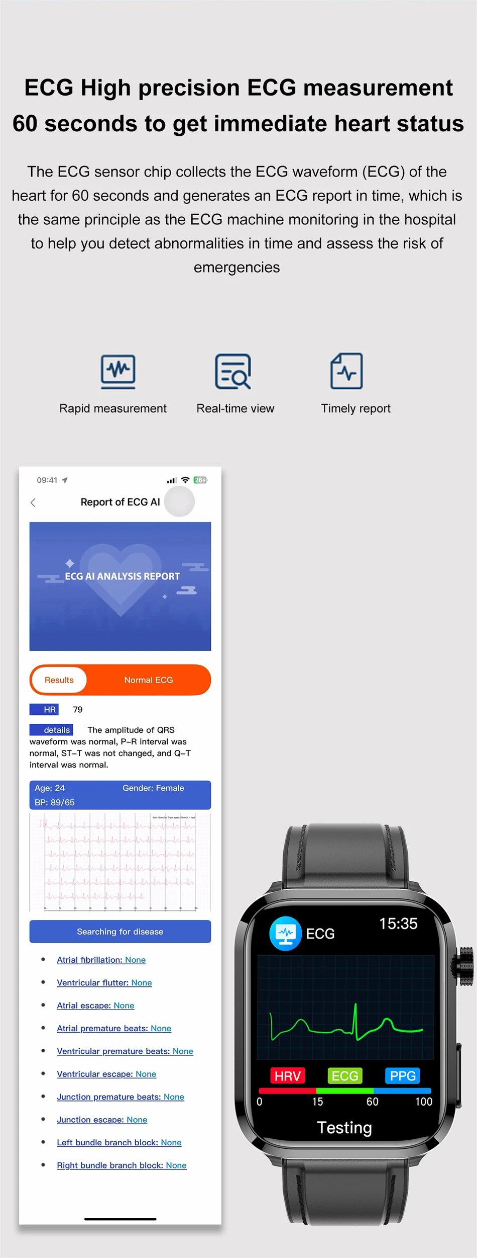 Equipped with high-precision sensors, the 2024 AI Medical Diagnosis Smart Watch provides real-time tracking of critical health metrics. The