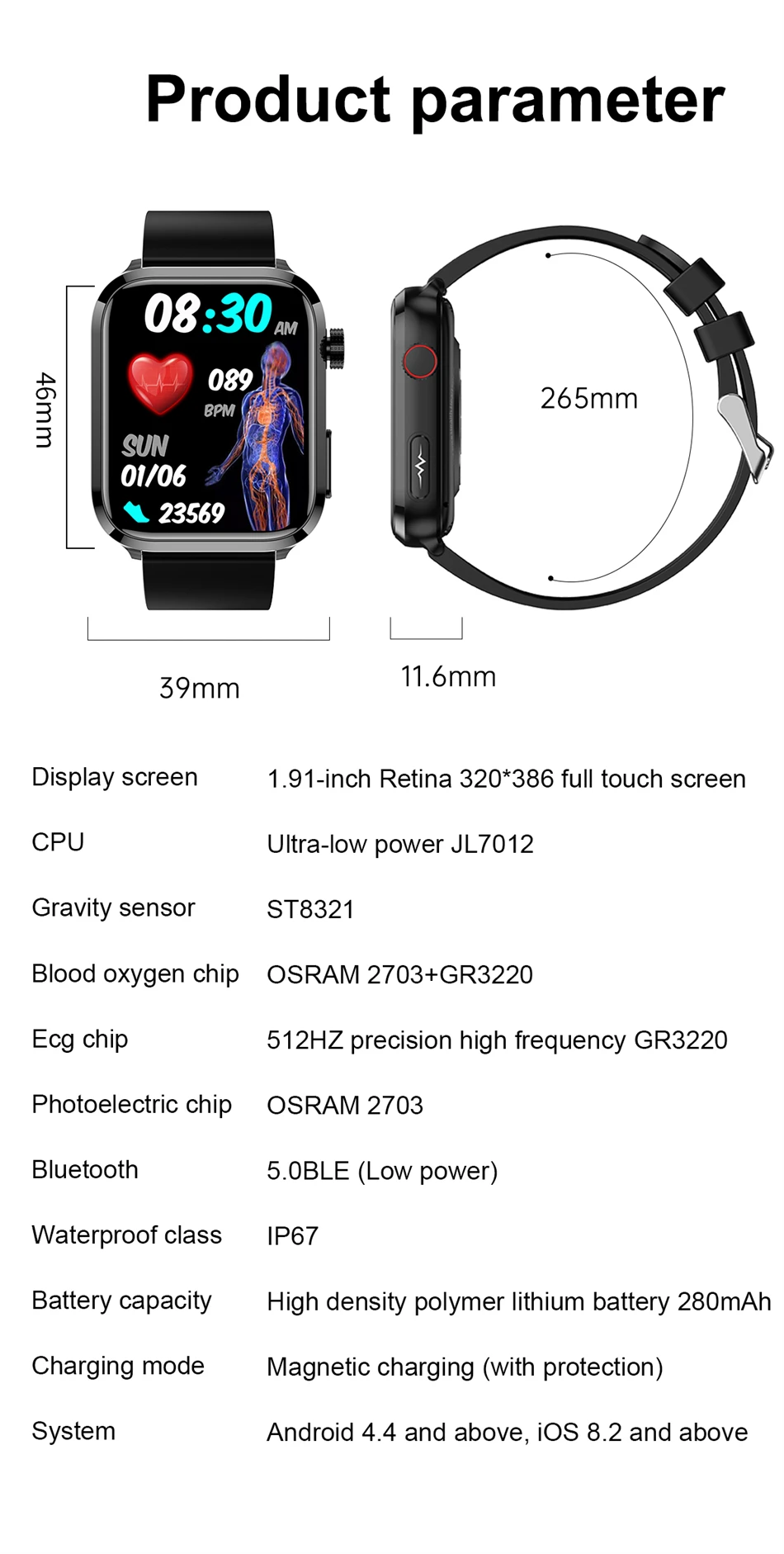 - Comprehensive Health Monitoring – Tracks essential metrics like blood glucose, uric acid, and ECG readings, giving users a complete view of their health.