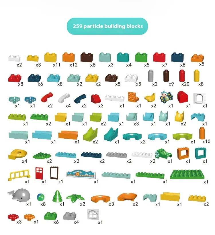 - 259 Large Particle Pieces: A generous selection of big, easy-to-handle blocks designed specifically for younger children, ensuring safe, engaging play.