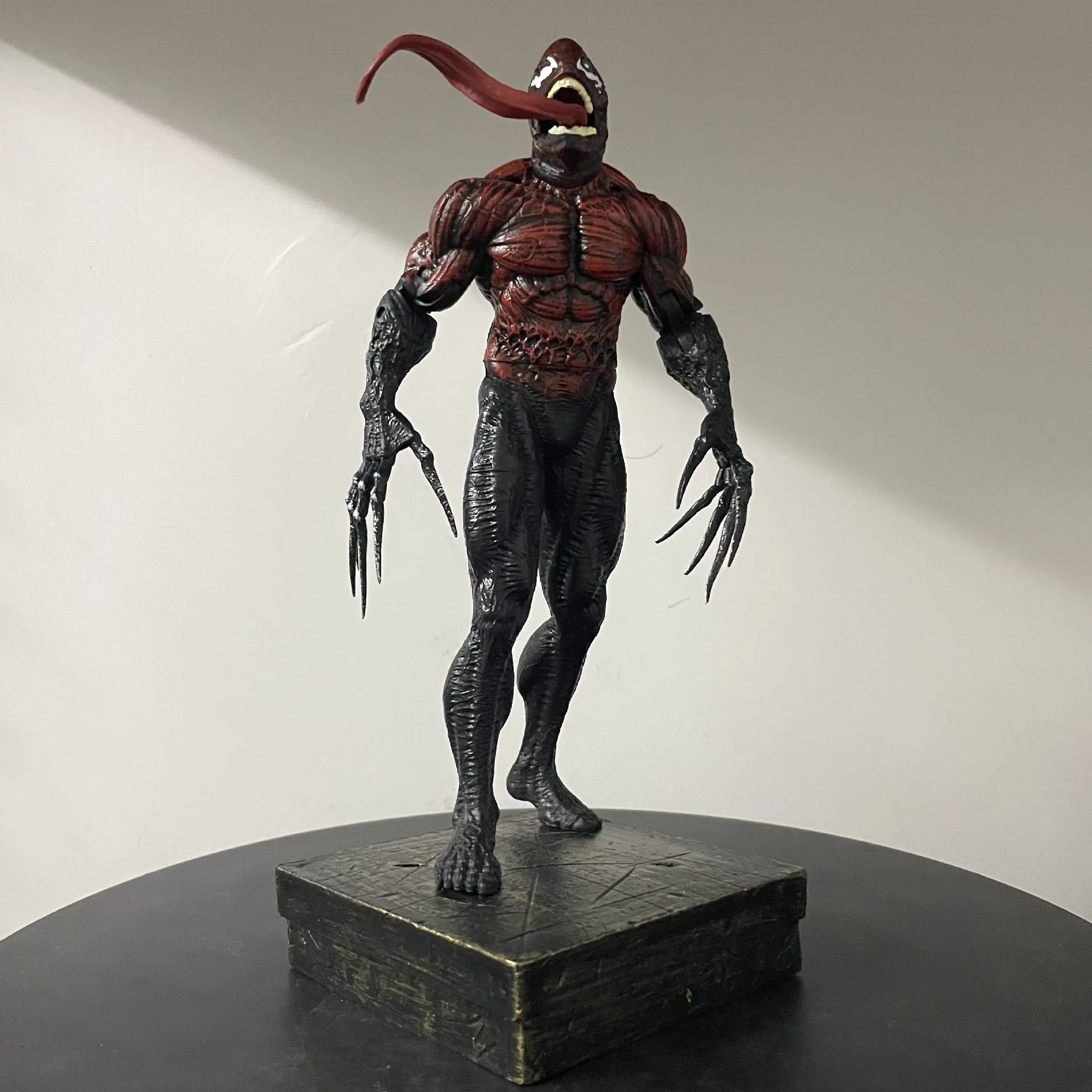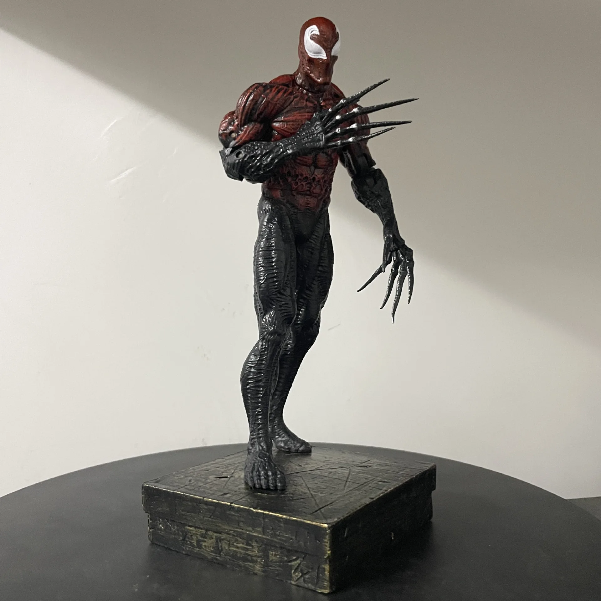 The two replaceable head carvings allow you to customize the figure's look. One head can capture Venom’s angry, monstrous expression, while the other head can convey his more sinister, menacing grin. These interchangeable heads make the figure even more dynamic and versatile, letting you switch between expressions depending on your mood or display preference.