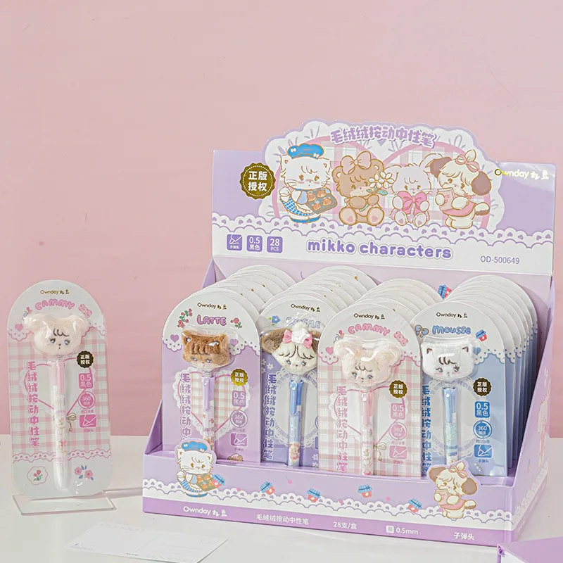 - Color and Finish: The pens are equipped with black gel ink, providing a smooth and consistent writing experience. The Mikko plush doll design adds a cute, eye-catching element to each pen.