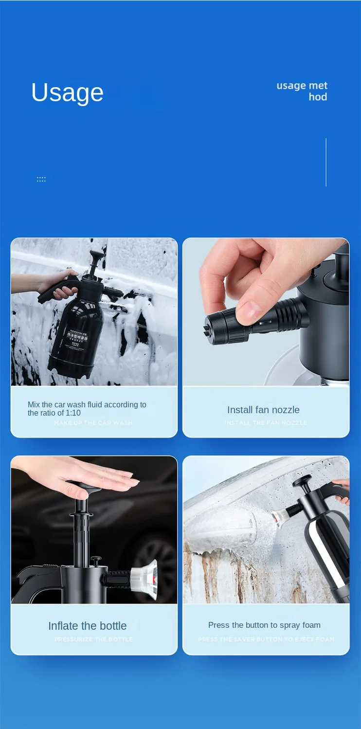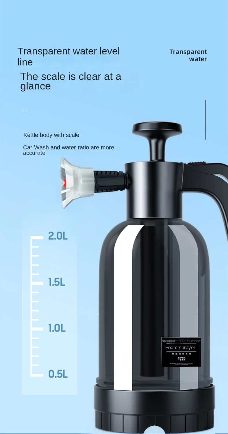 The 2L Hand Pump Foam Sprayer combines convenience, durability, and performance, making it the ultimate tool for versatile cleaning. With its large capacity, customizable nozzles, and ergonomic design, this foam sprayer simplifies your cleaning routine while delivering professional results. Say goodbye to messy and inefficient cleaning methods – this foam sprayer is a game-changer for your car, windows, and more!