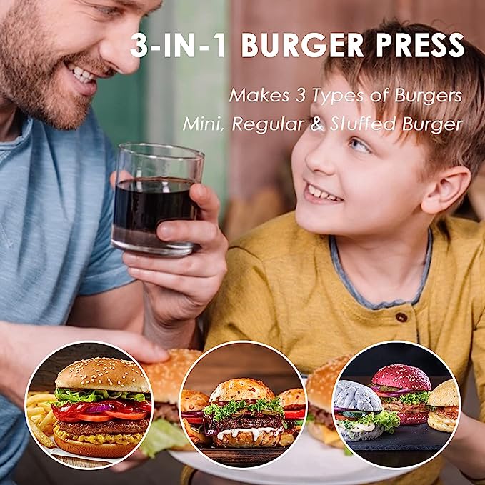 🍔【Easy to use and clean】🍔 -- The patties can be easily made in just three steps, first load meat and press, then stuff,