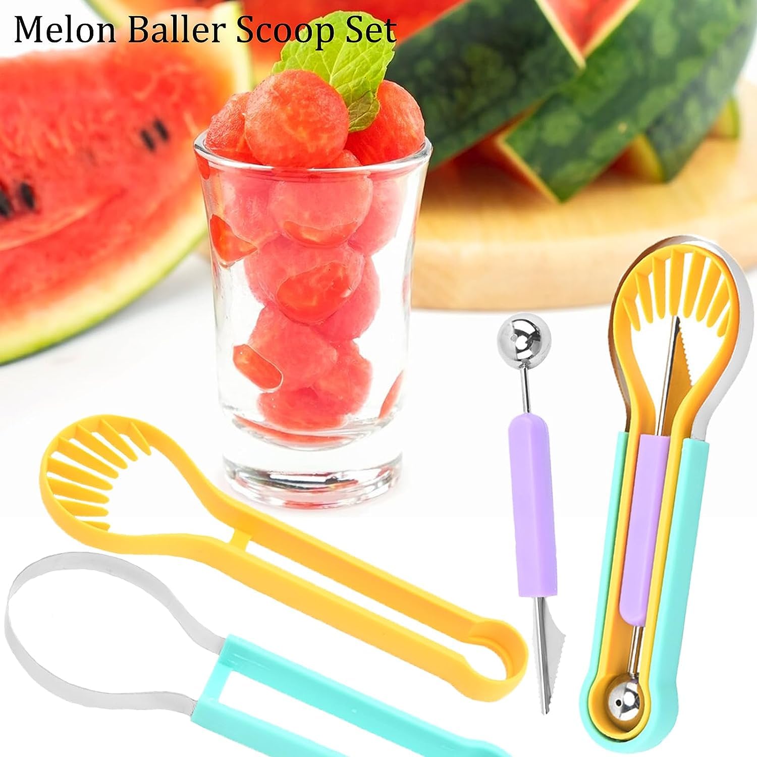 3-in-1 Fruit Digger Fruit Carving Knife Set Cutter Fruit Platter Separator Kitchen Gadgets Watermelon Ice Cream Baller Scoop