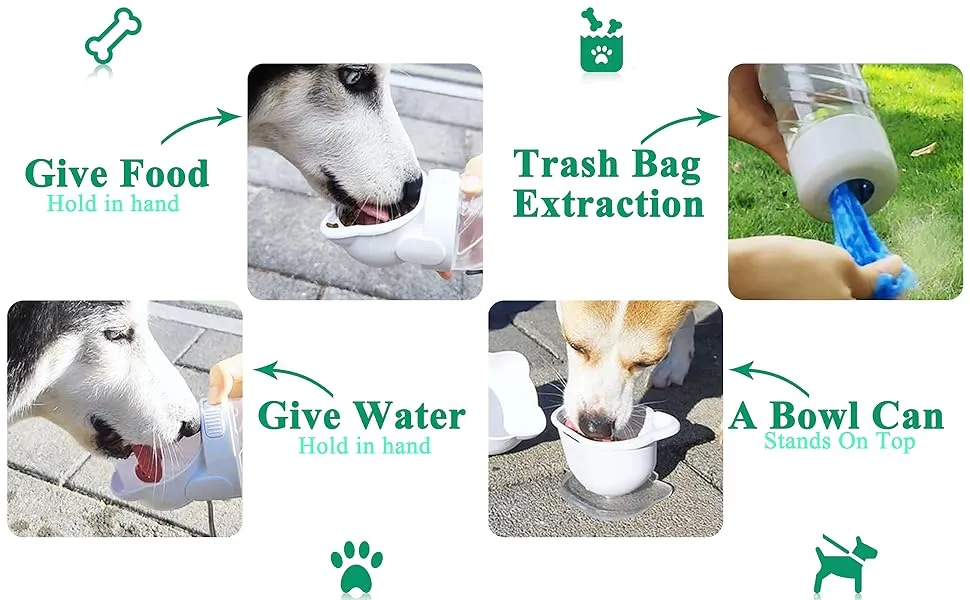 3 In 1 Pet Water Bottle Outdoor Portable Dog Water Bottle With Food Container Garbage Bags Dispenser For Cat Puppy Pets Stuff Accessories For Walking Hiking Travel