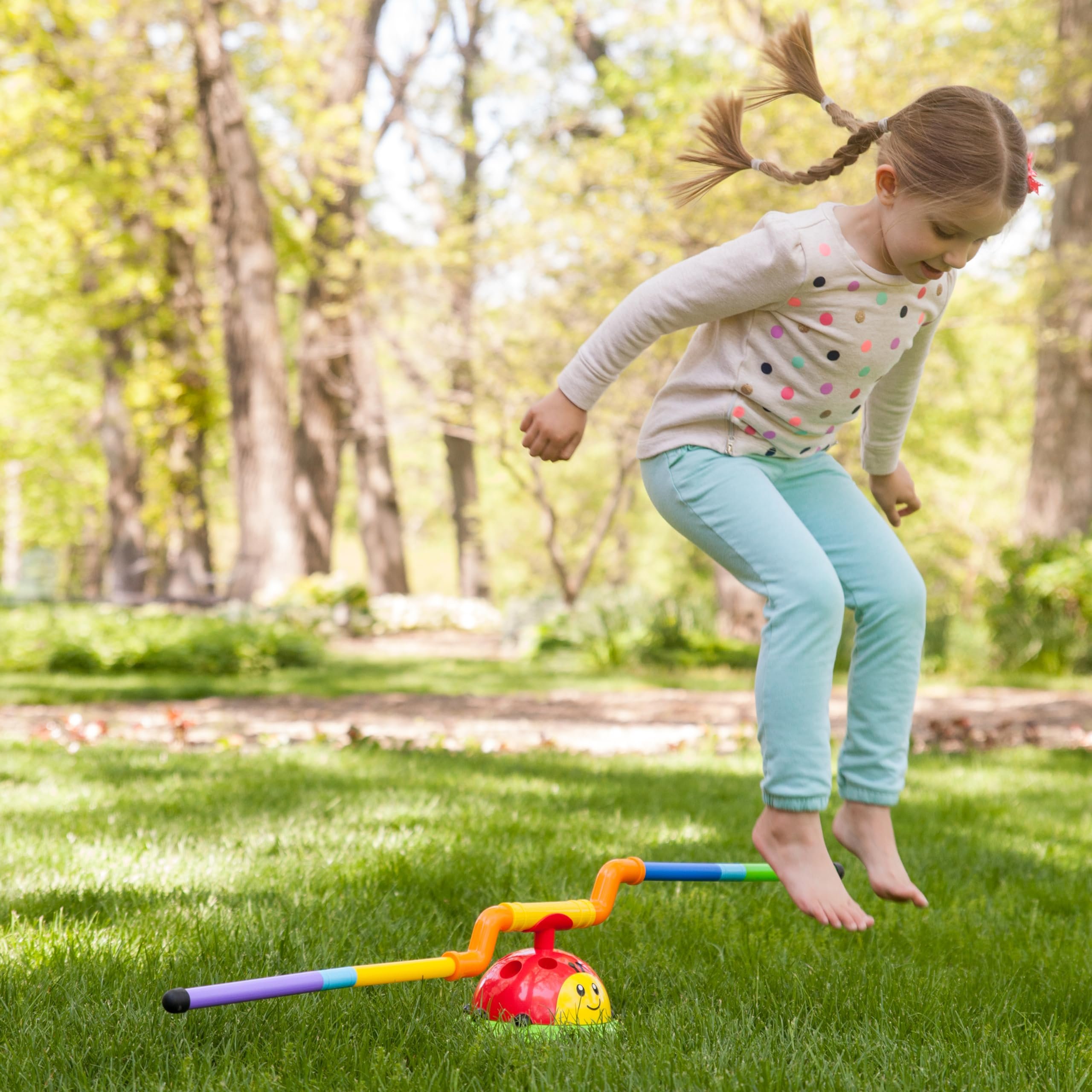 SPINNING POLE-HOPPING GAME that transforms into a spinning ring-toss game; endless active fun!
