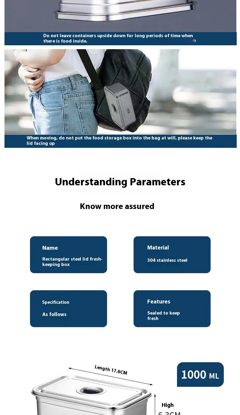 Designed with food preservation in mind, the 304 Stainless Steel Crispy Food Grade Lunch Box is perfect for storing crispy foods like chips, crackers, and sandwiches, maintaining their freshness and crunch. The airtight lid helps to keep moisture out, ensuring that your food stays as fresh and crisp as when you packed it. This makes it the perfect storage solution for salads, sandwiches, and any food you want to keep crisp and dry.