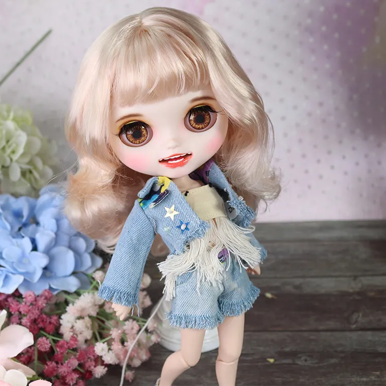 Complete set of clothes = 1 doll + clothes + shoes + wig + eye mask handmade random eyepieces + hand-painted makeup + dental installation