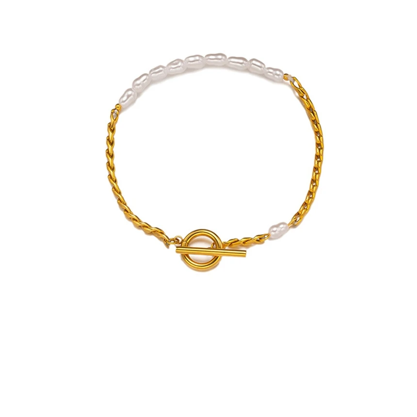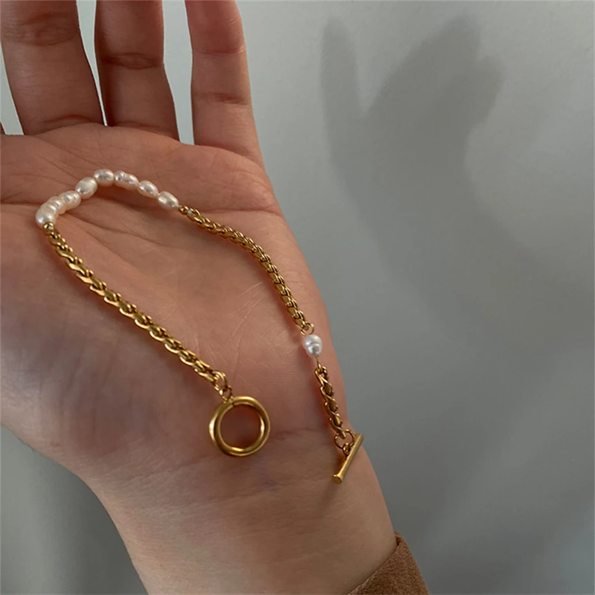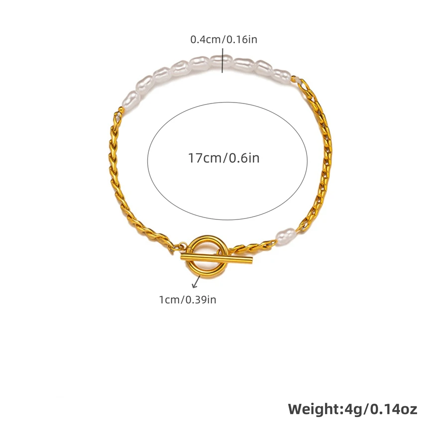 Made from premium 316L stainless steel, renowned for its durability and resistance to tarnishing, this bracelet features irregularly shaped imitate pearls and a stylish OT buckle chain design. Whether you're dressing for everyday elegance or seeking a memorable gift, this bracelet offers versatility and fashion-forward appeal.