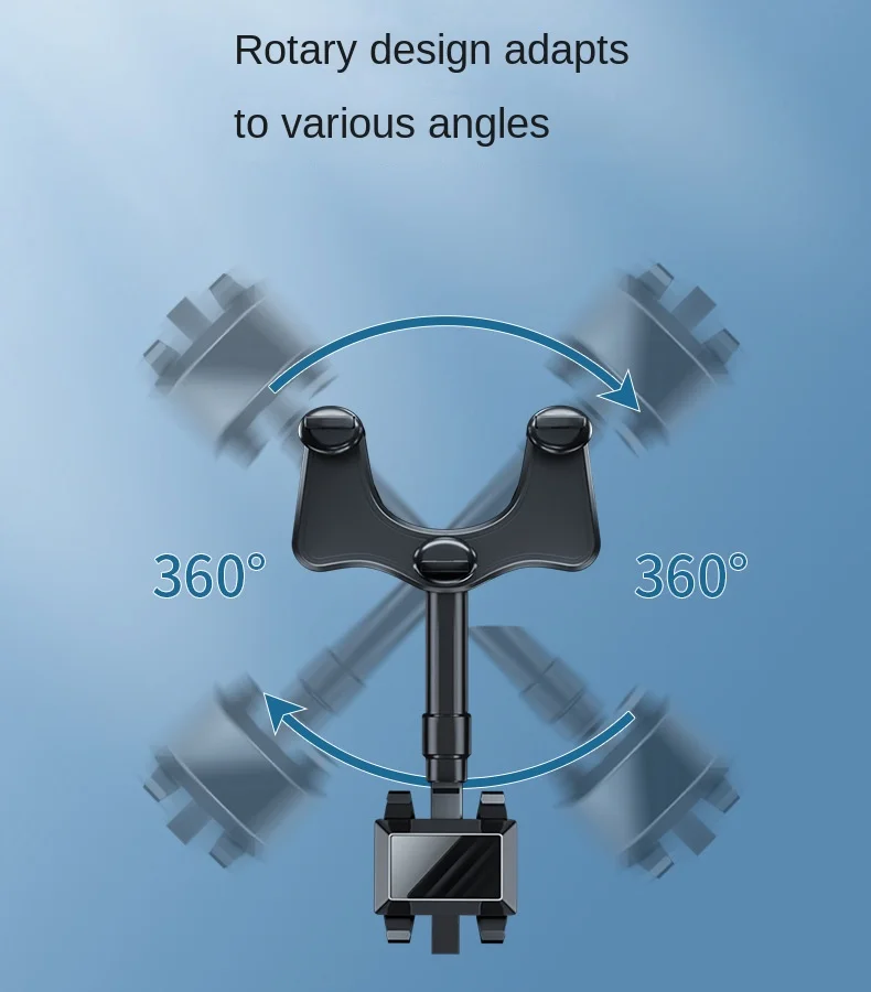 360 Car Rearview Mirror Phone Holder for Car Mount Phone and GPS Holder Support Rotating Adjustable Telescopic Phone Stand