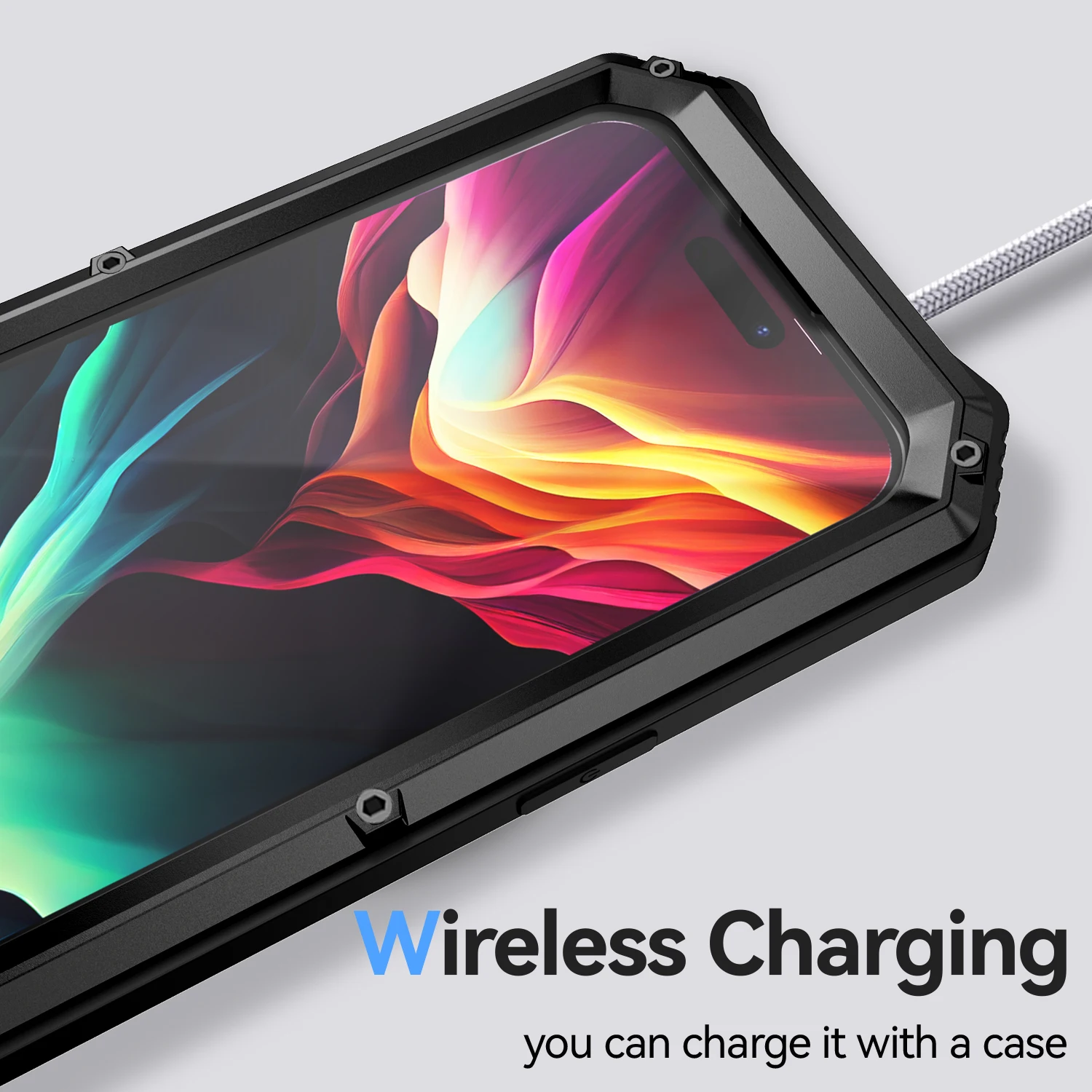 The 360 Meta Armor heavy duty phone cover is designed for all variants of the iPhone 15 series, including the iPhone 15, iPhone 15 Plus, iPhone 15 Pro, and iPhone 15 Pro Max. This case features built-in screen and lens protection, ensuring your device remains shockproof and secure. Ideal for providing maximum defense against drops, impacts, and everyday wear and tear