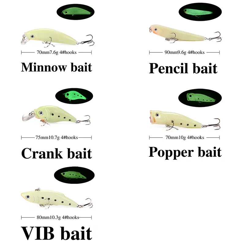 This hard bait is versatile and effective for attracting various species of fish. Its realistic action, combined with the glowing effect, appeals to fish like bass, perch, trout, snapper, tuna, and many others. The bait’s ability to simulate distressed or injured prey makes it ideal for targeting predatory fish that rely on sight to hunt their food.