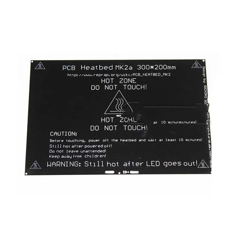 The MK2A hot bed platform is made from high-quality aluminum, offering superior strength and stability during printing. Aluminum is known for its excellent heat conduction properties, making it ideal for 3D printing where consistent and uniform heating is crucial for optimal print quality.