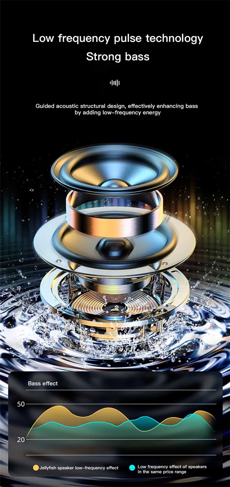 1 [Low-frequency pulse technology ] Guided acoustic structural design, effectively enhancing bass by adding low-frequency energy
