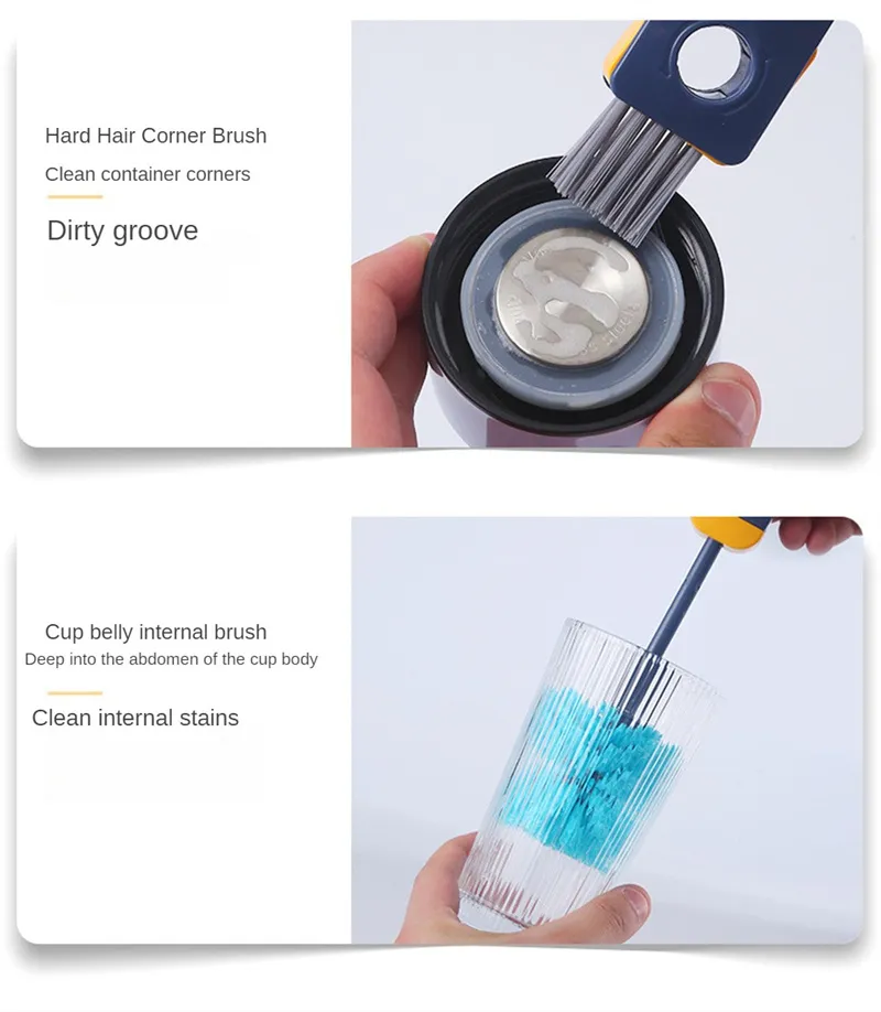 3. Corner brush with bristles to clean up the dirt on the corner grooves of the container