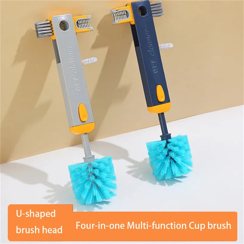 4 In 1 Bottle Gap Cleaner Brush Multifunctional Cup Cleaning Brushes Water Bottles Clean Tool Mini Silicone U-shaped Brush Kitchen Gadgets