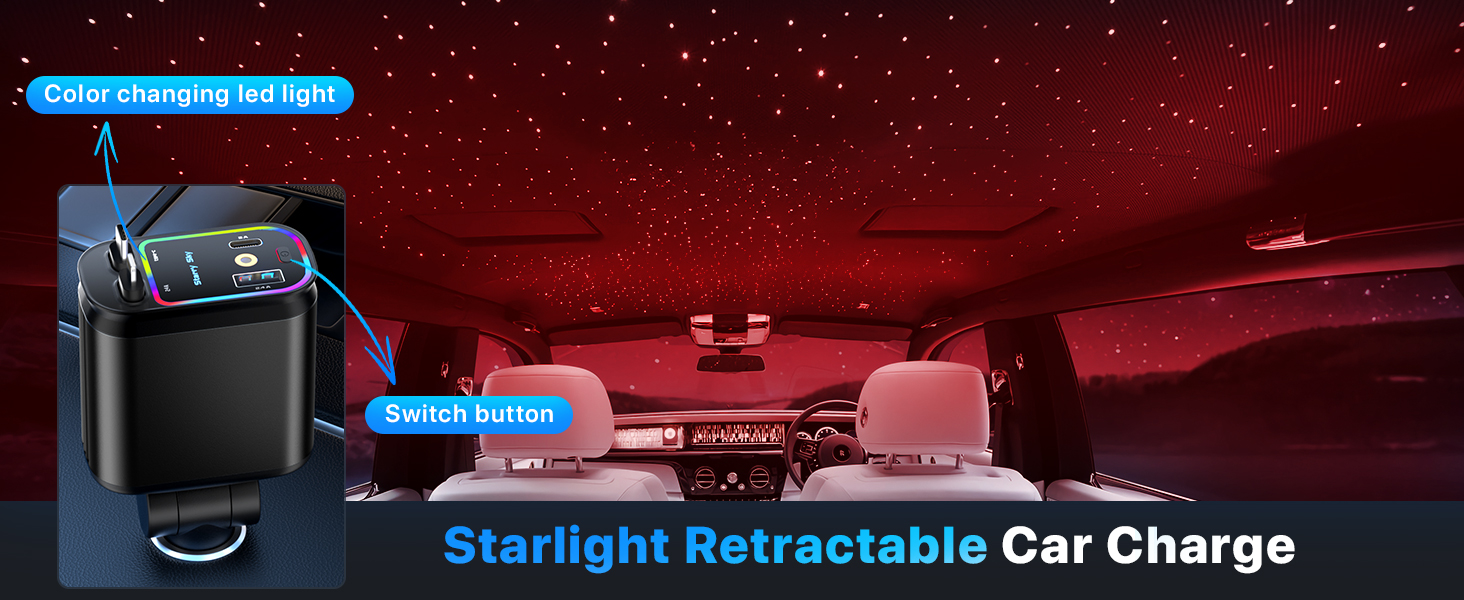 1 Retractable Car Charger Starlight In-Car Roof 100W USB Type C