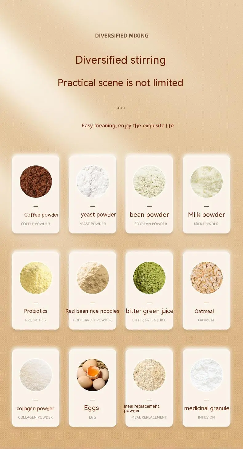 self-stirring mug can mix them all for you automatically. Just wash it with running water and it's ready to use again. Easy to clean and