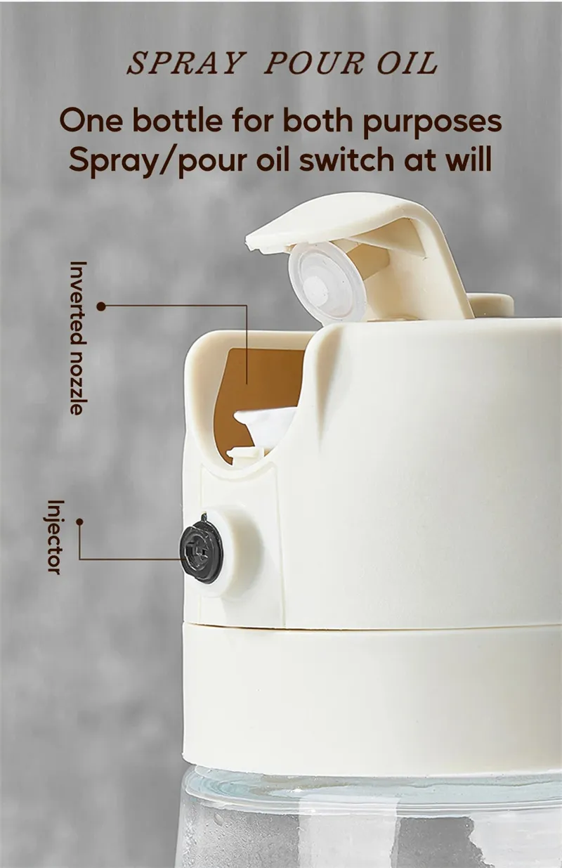 1. Dual Functionality: Our olive oil dispenser doubles as both a spray and a pour bottle, saving valuable kitchen space. Experience the versatility of one product that allows you to switch between spraying a fine mist and pouring a controlled stream of oil, depending on your cooking needs.