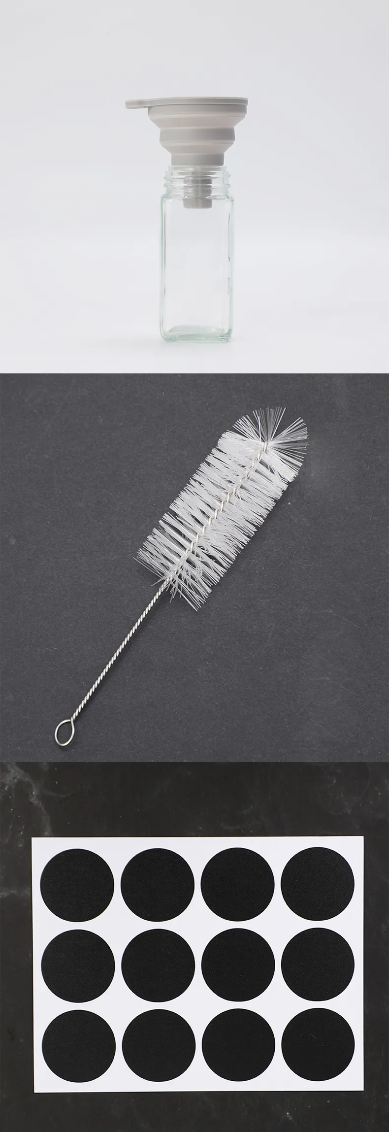 The wide neck of the bottle makes it easy to refill and clean. Simply remove the lid and scattering top for thorough washing by hand.