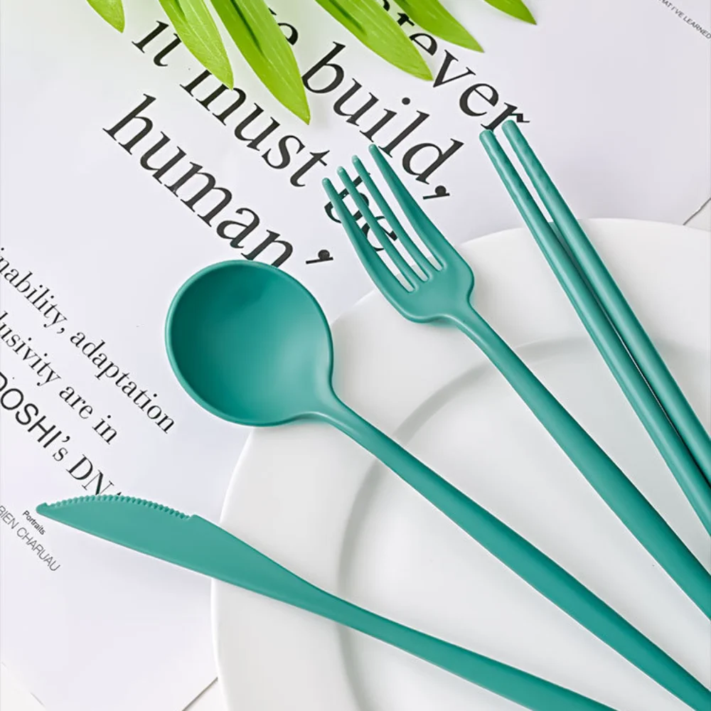 Complete 4-Piece Set: This set includes everything you need for a meal on the go—knife, fork, spoon, and chopsticks.