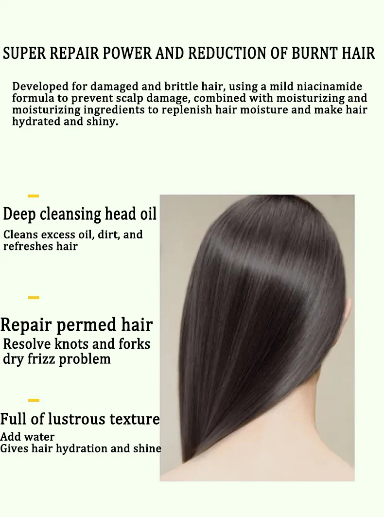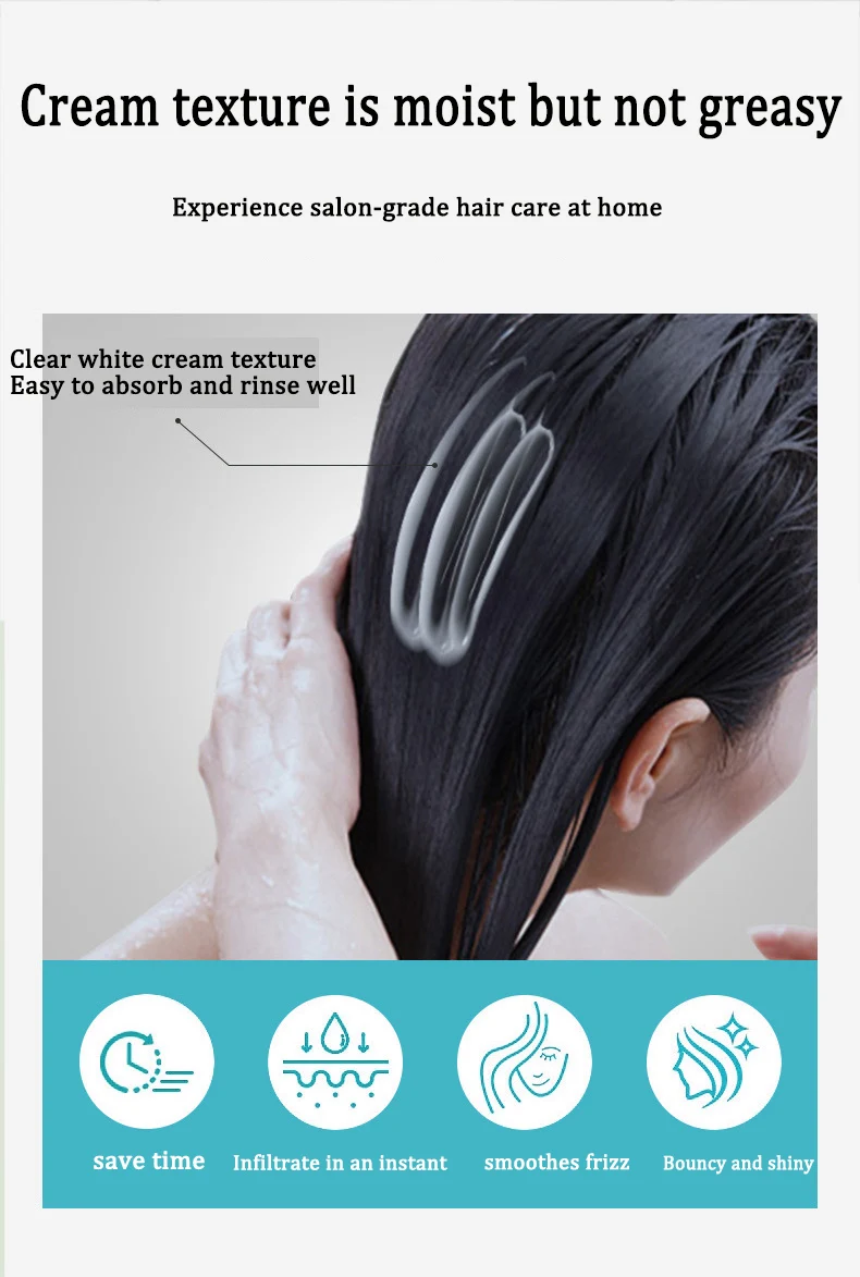 The softening repair cream is formulated to repair damage, hydrate dry strands, and soften coarse hair. Whether you have damaged hair, frizz, or split ends, this nourishing treatment helps restore hair to its natural softness and elasticity. The moisturizing hair mask works deep within each strand, locking in moisture while adding volume and shine.